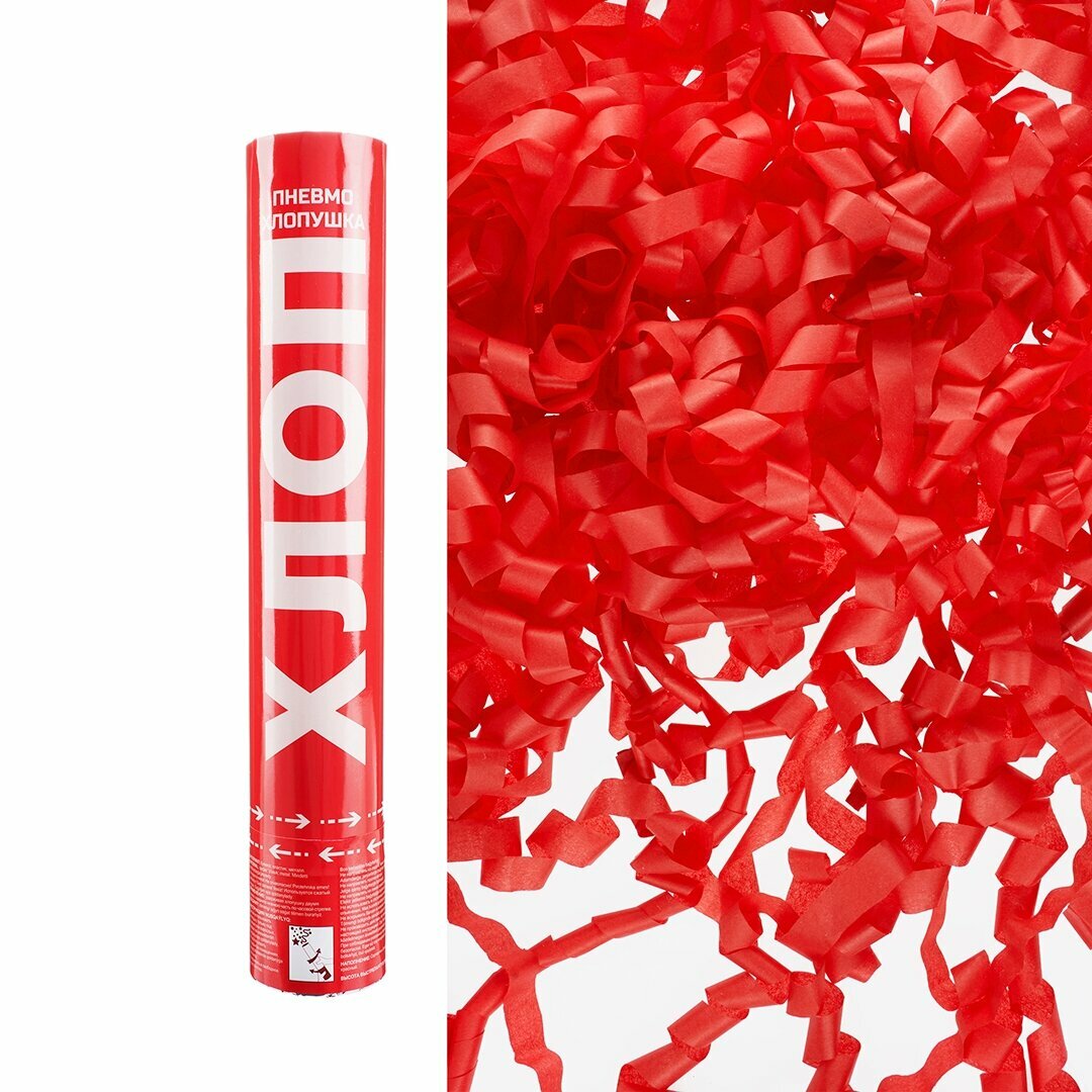 Пневмохлопушка (12/30 см), Хлопни, Серпантин тишью, Красный, 1 шт. интересное:
