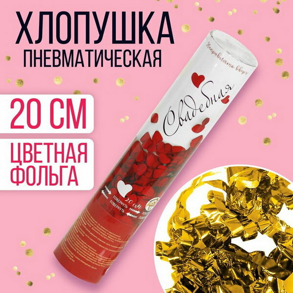 Хлопушка пневматическая "Свадебная", 20 см, наполнение: фольга интересное: