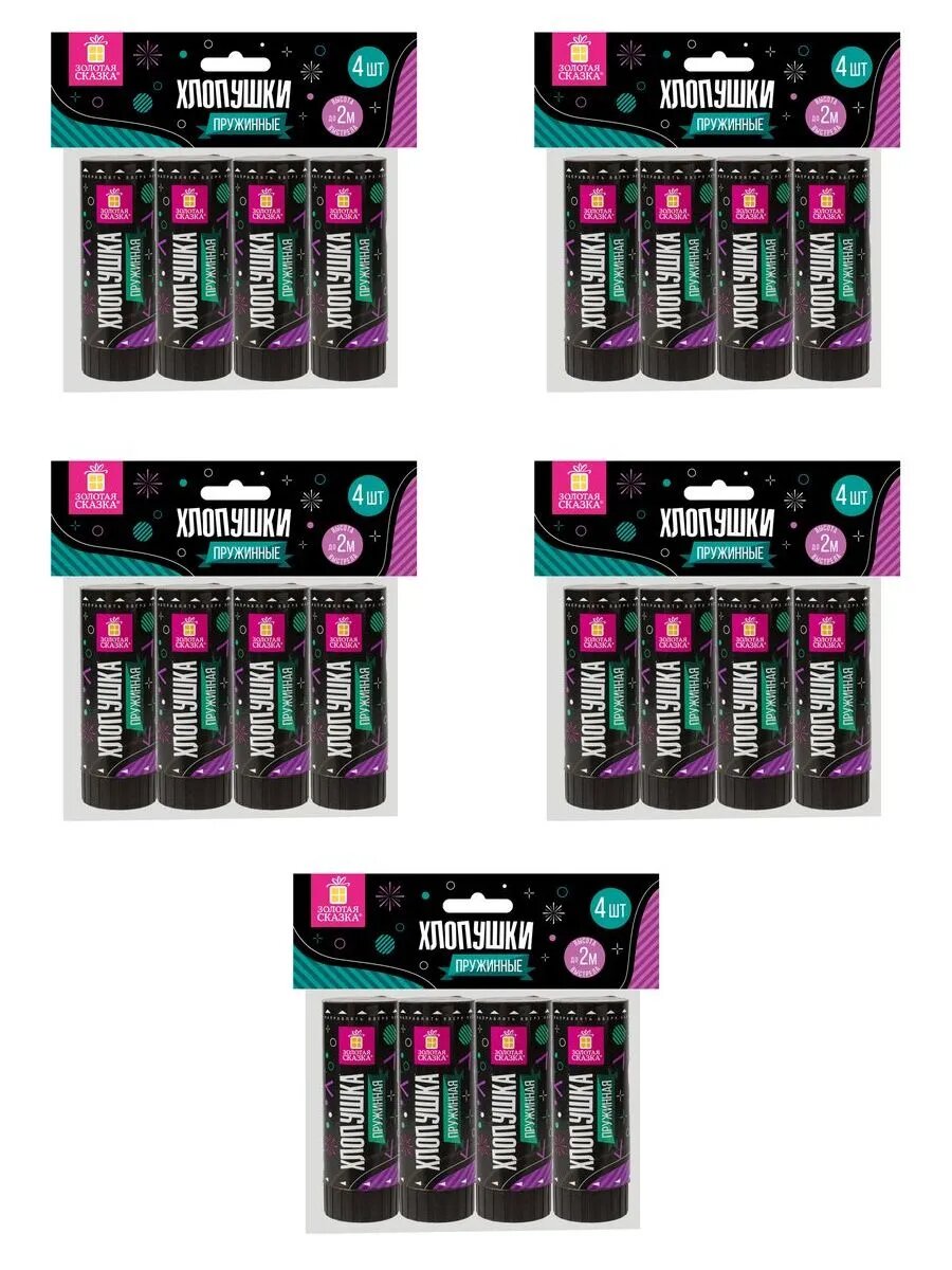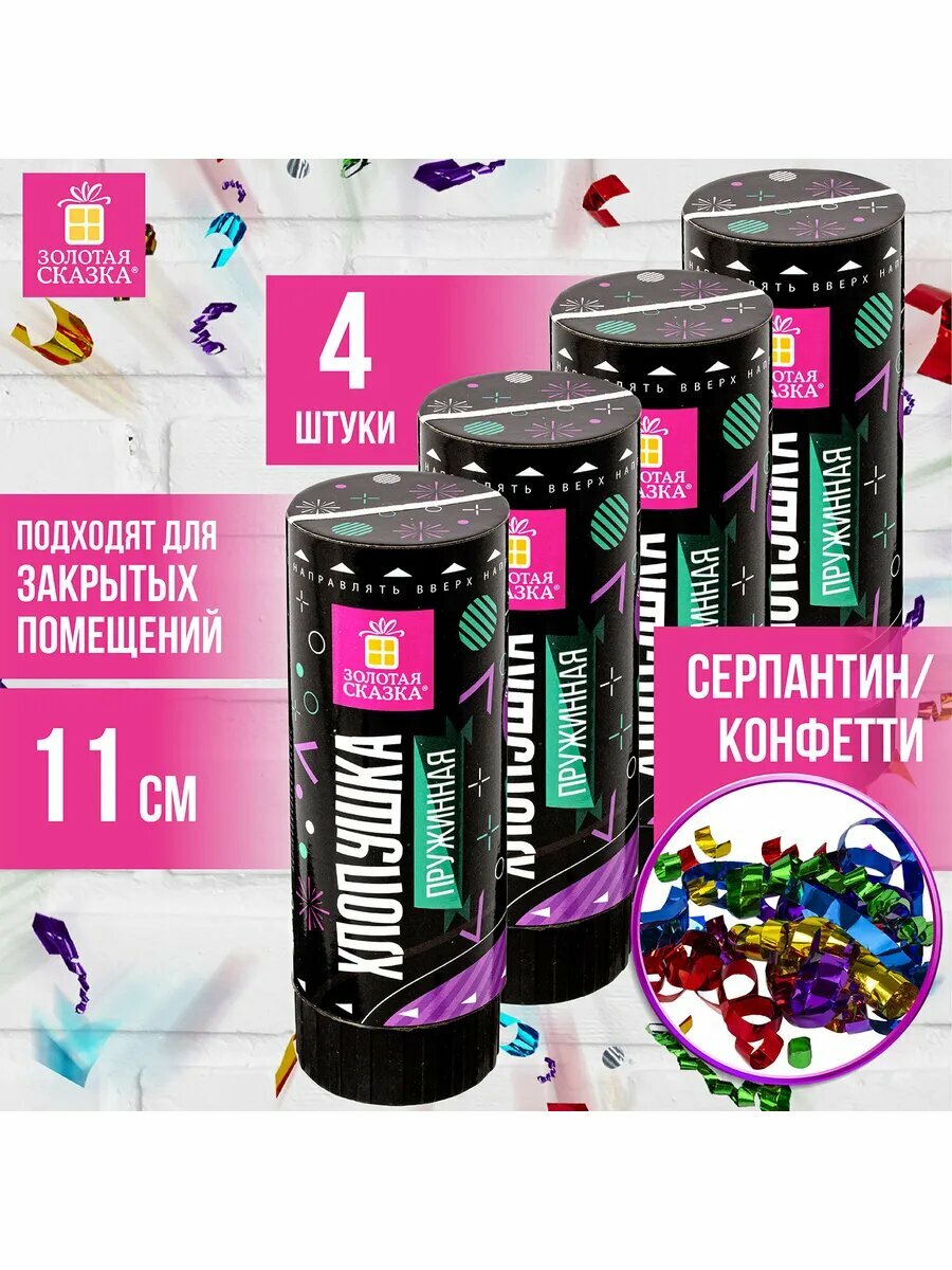 Купить Хлопушка пружиннаянабор 4 шт, 11 см, фольга, серпанти - 5шт