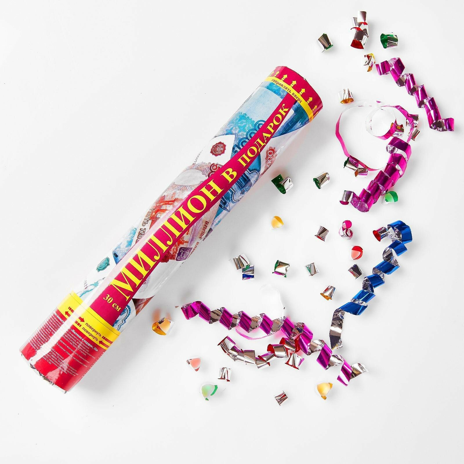 Хлопушка пневматическая "Миллион в подарок ", деньги, серпантин, бумага, 30 см. интересное: