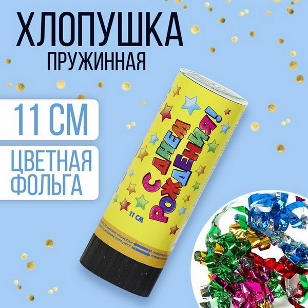 Хлопушка пружинная "С Днём Рождения", звёздочки, конфетти, фольга, серпантин, 11 см интересное: