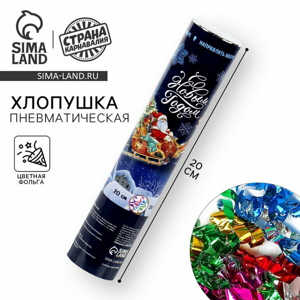Купить Хлопушка "С Новым годом!", пневматическая, 20 см, наполнение: фольга