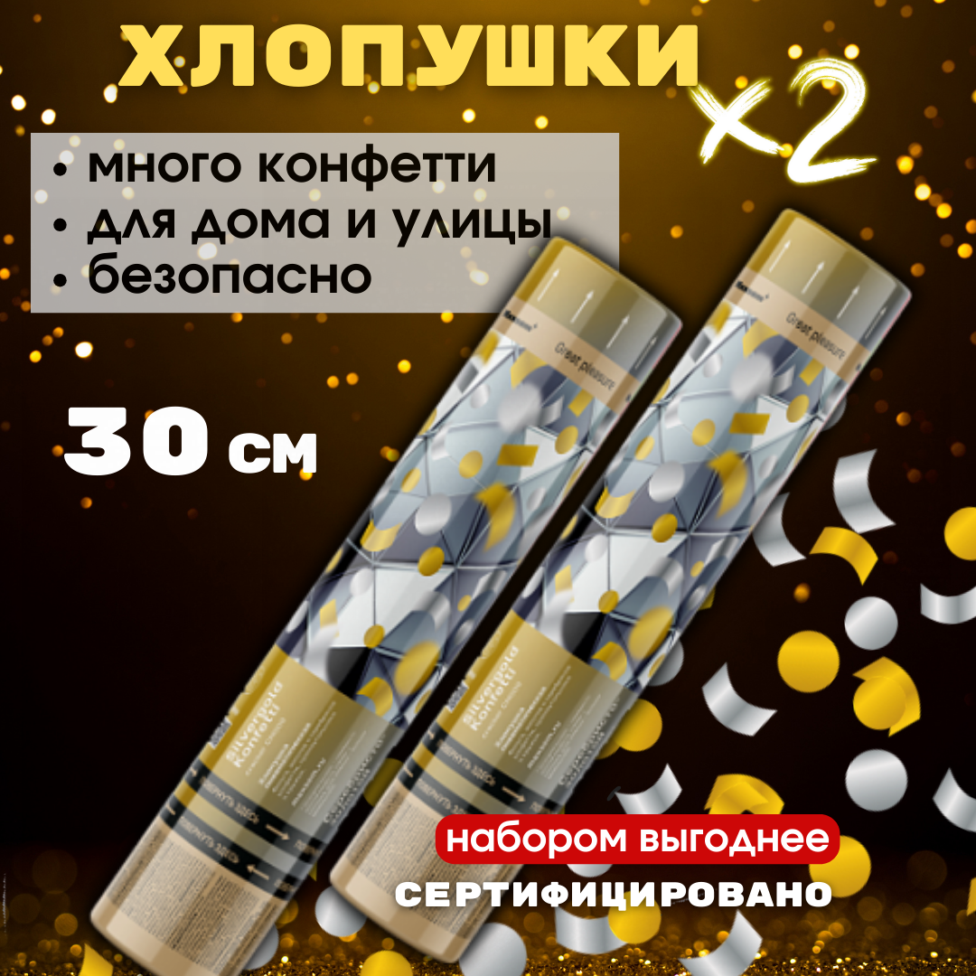 Пневматическая хлопушка 30 см, золотое и серебряное конфетти, 2 шт интересное: