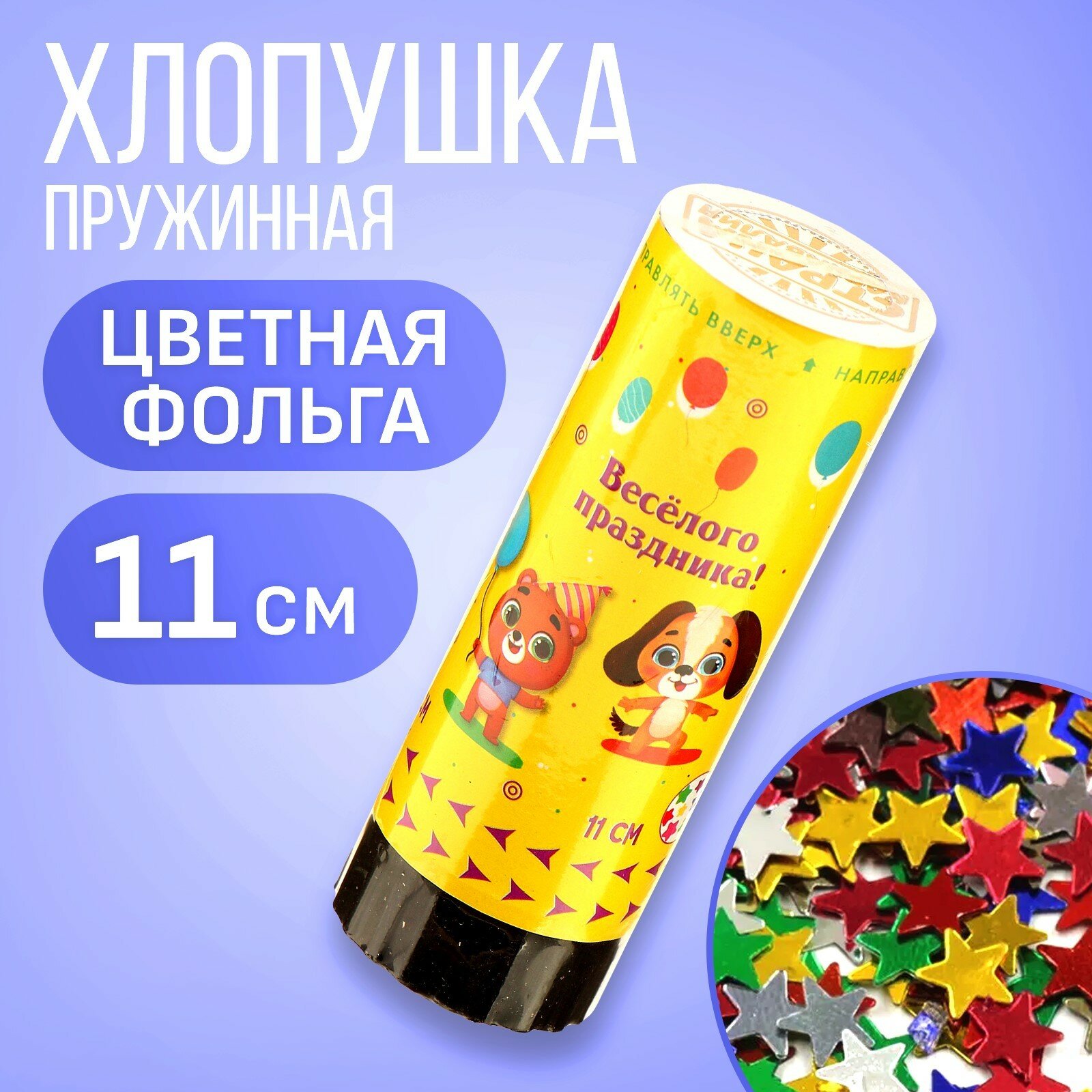 Купить Хлопушка пружинная поворотная "Весёлого праздника", 11см, наполнение: фольга