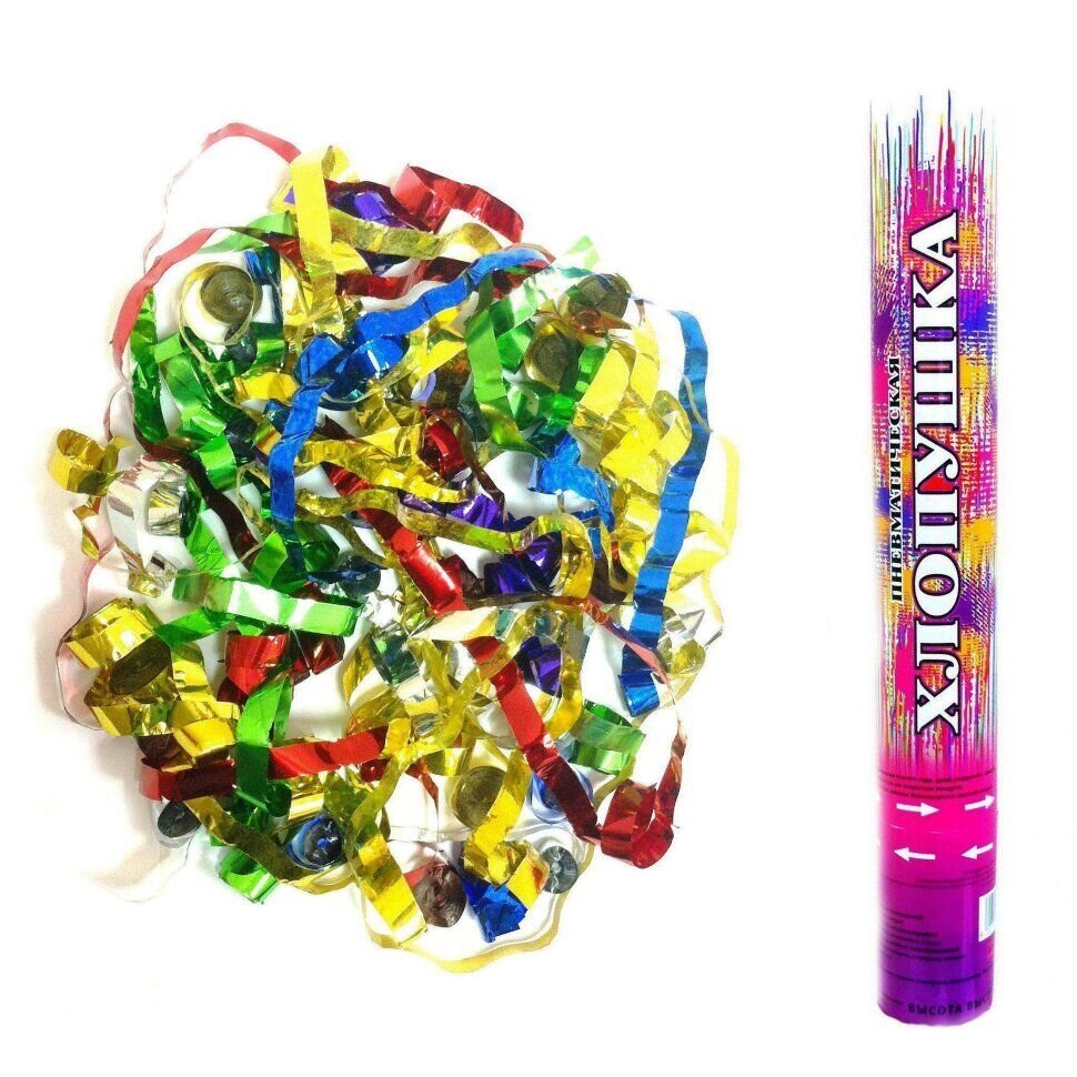 Пневмохлопушка (12/30 см), Металлизированная лента, Ассорти, 1 шт. интересное: