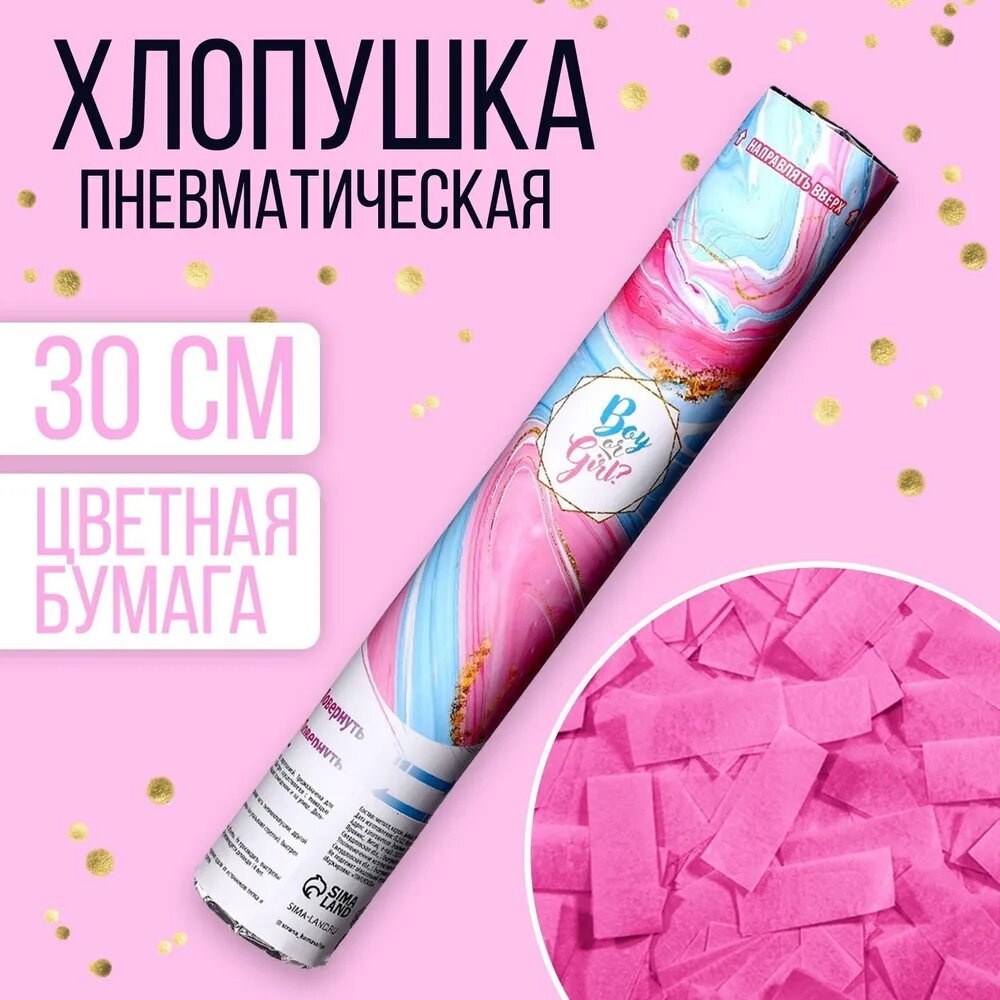 Хлопушка пневматическая "Boy or Girl" мрамор розовый, 30 см, Страна Карнавалия интересное: