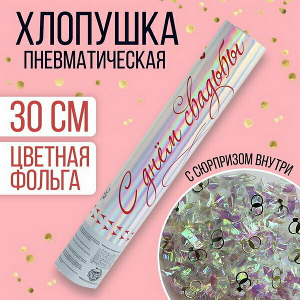 Хлопушка пневматическая "С днём свадьбы", 30 см, наполнение: фольга интересное: