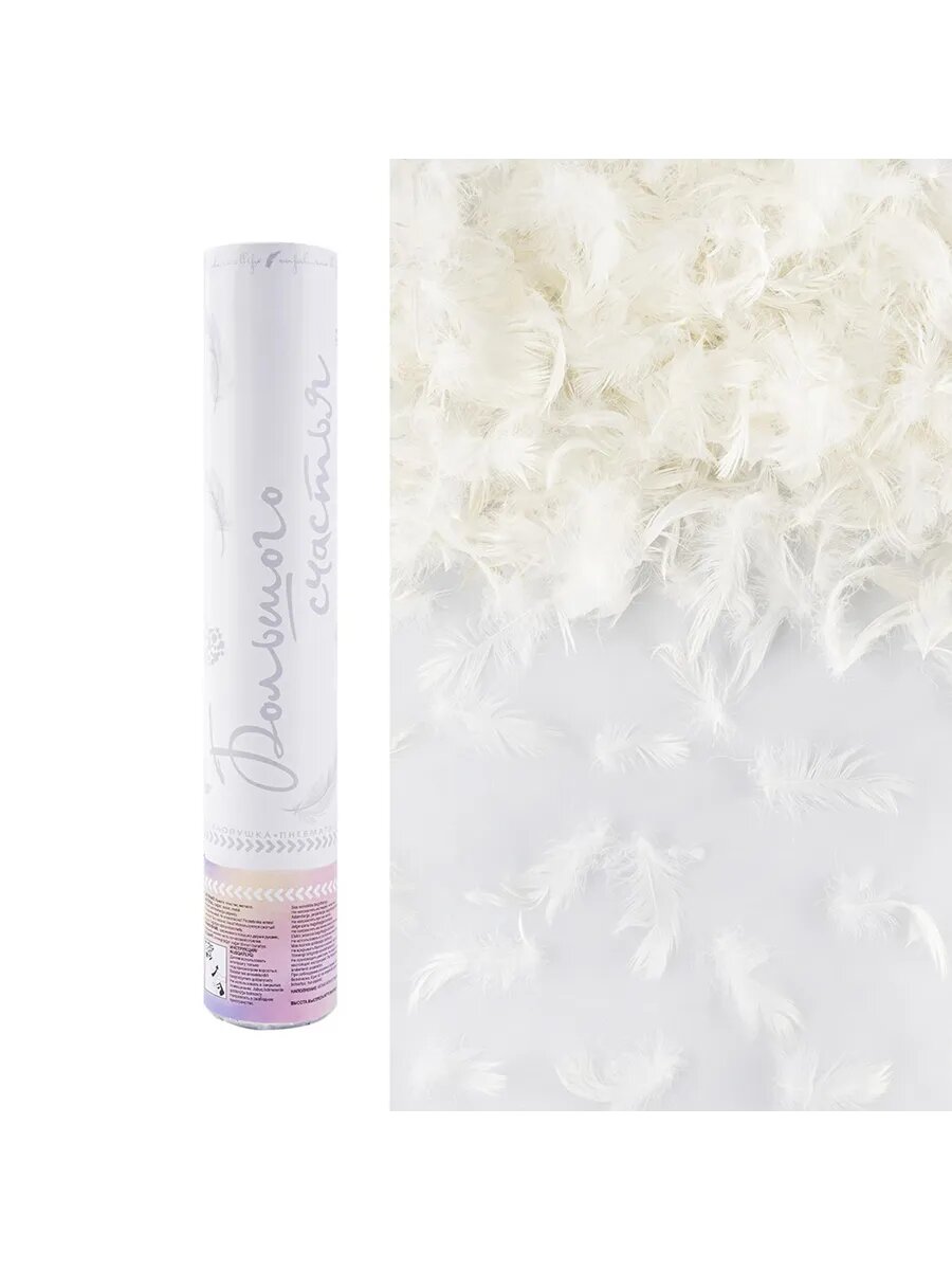 Пневмохлопушка (12/30 см), Большого Счастья, Перья, Белый, интересное: