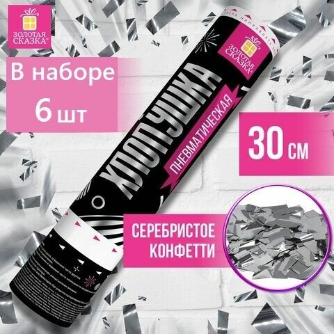 Набор из 6 шт. Хлопушка пневматическая золотая сказка 30 см, фольга, прямоугольники, серебристый интересное: