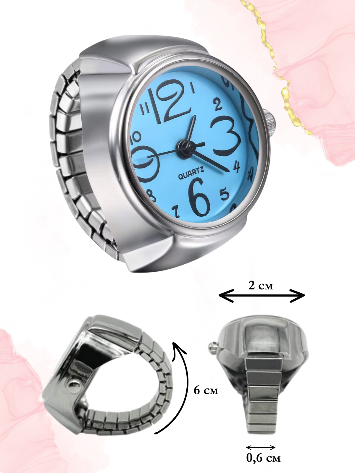 Часы-кольцо, голубой интересное: