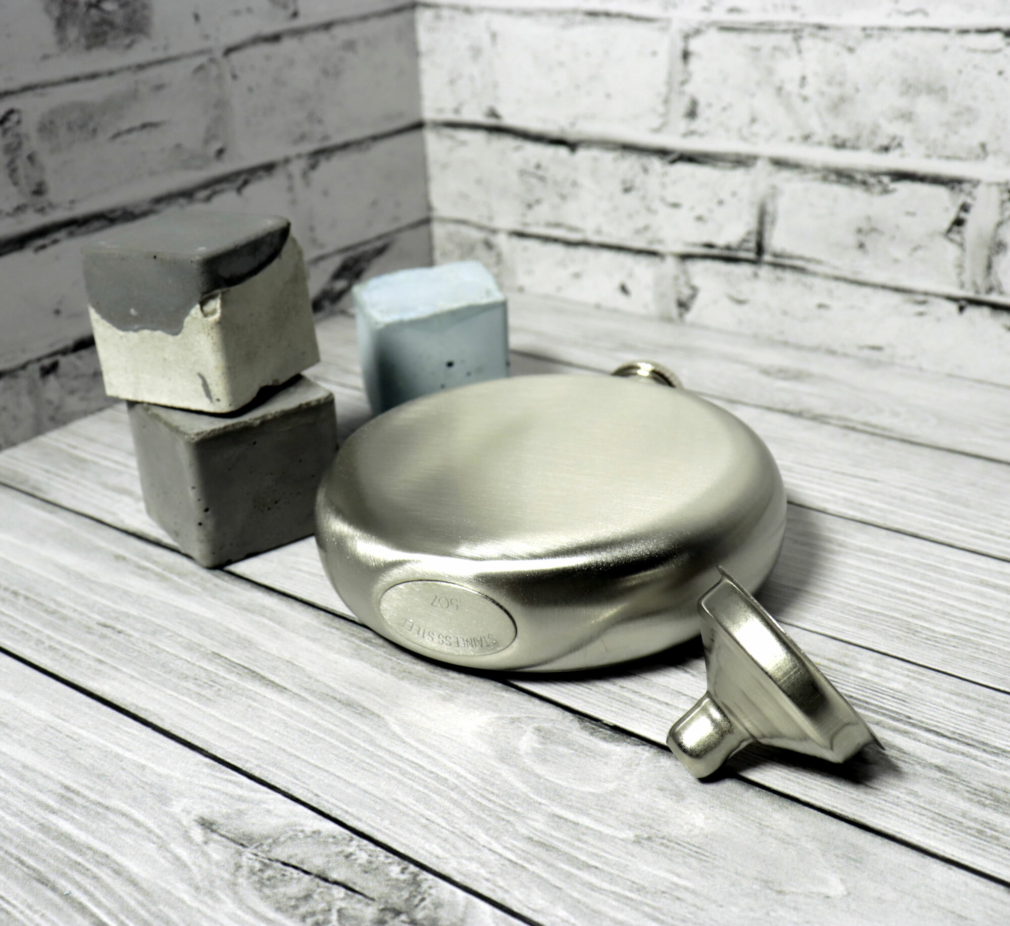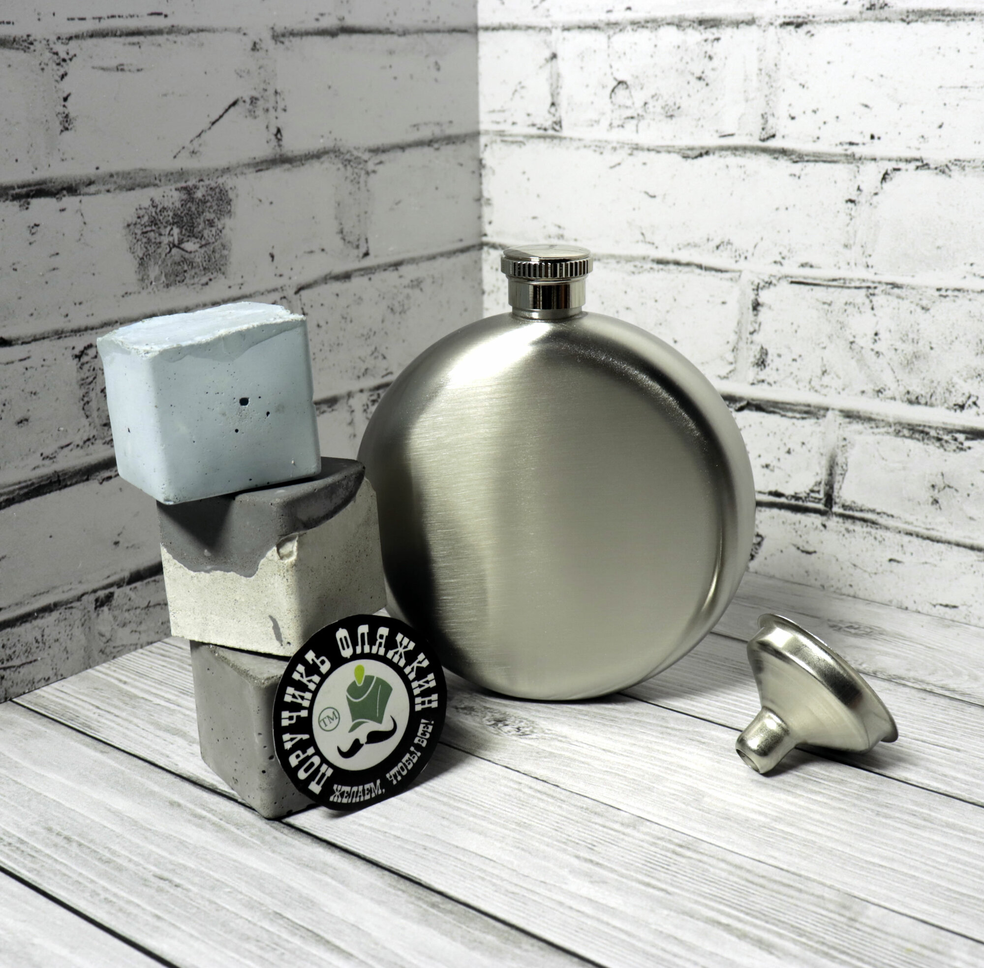 Фляжка круглая металлическая (145 мл) с воронкой в комплекте интересное: