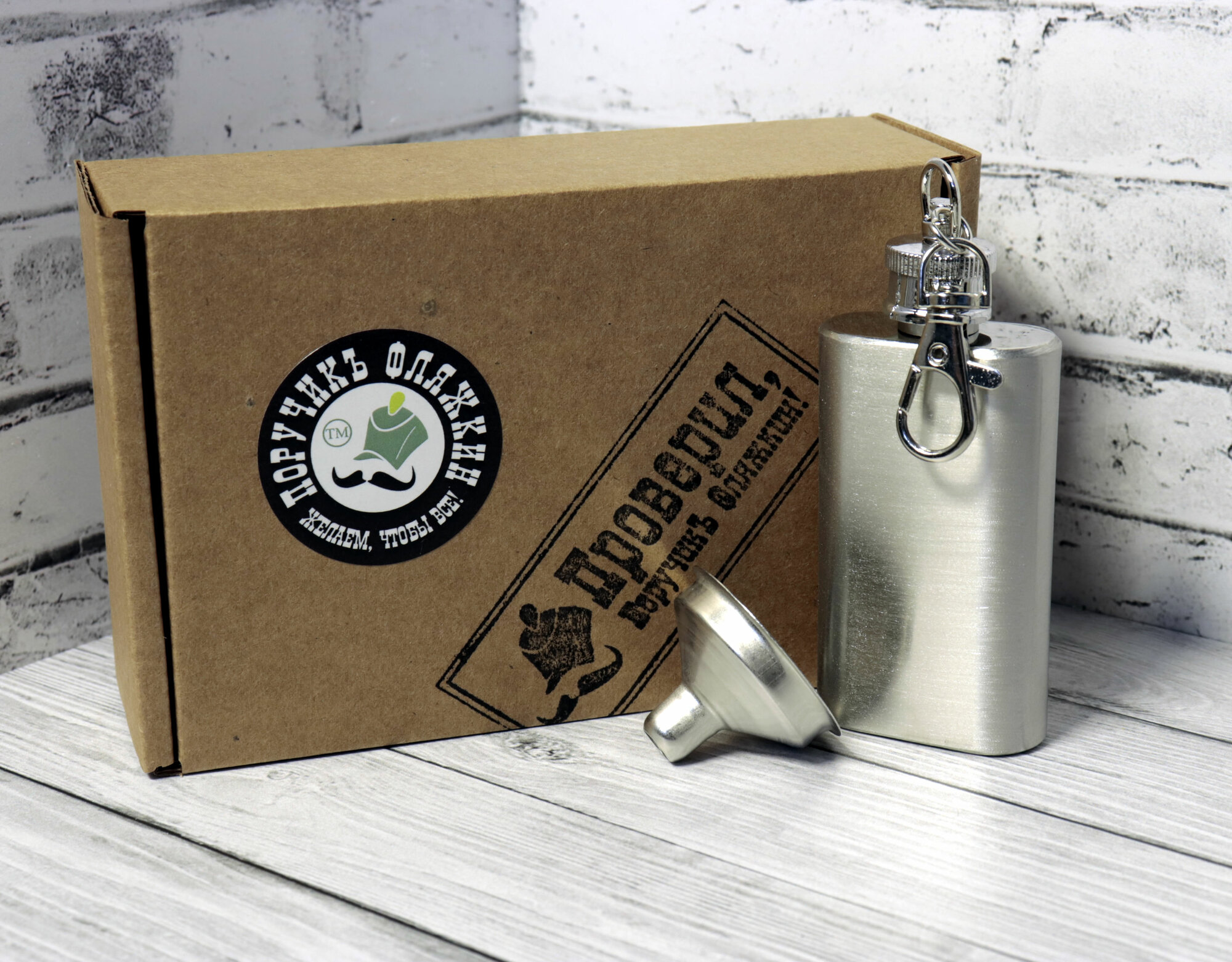 Металлическая фляжка (200 мл) , малая воронка. Поручикъ Фляжкин