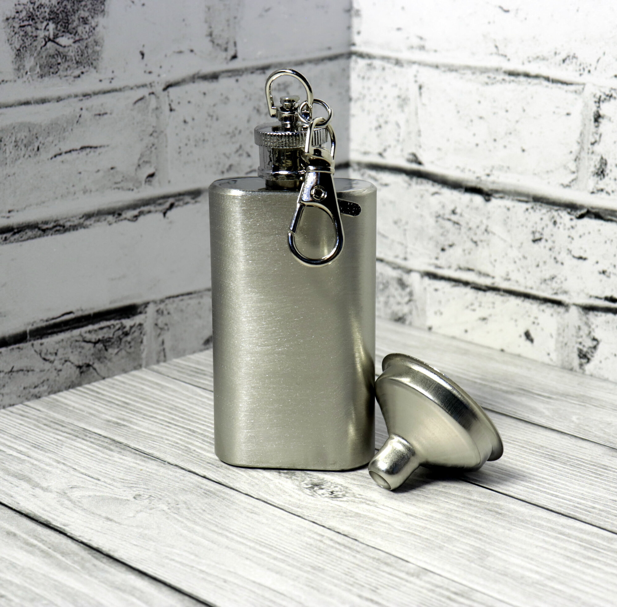 Металлическая фляжка на брелоке (60 мл), воронка. "Поручикъ Фляжкин" интересное: