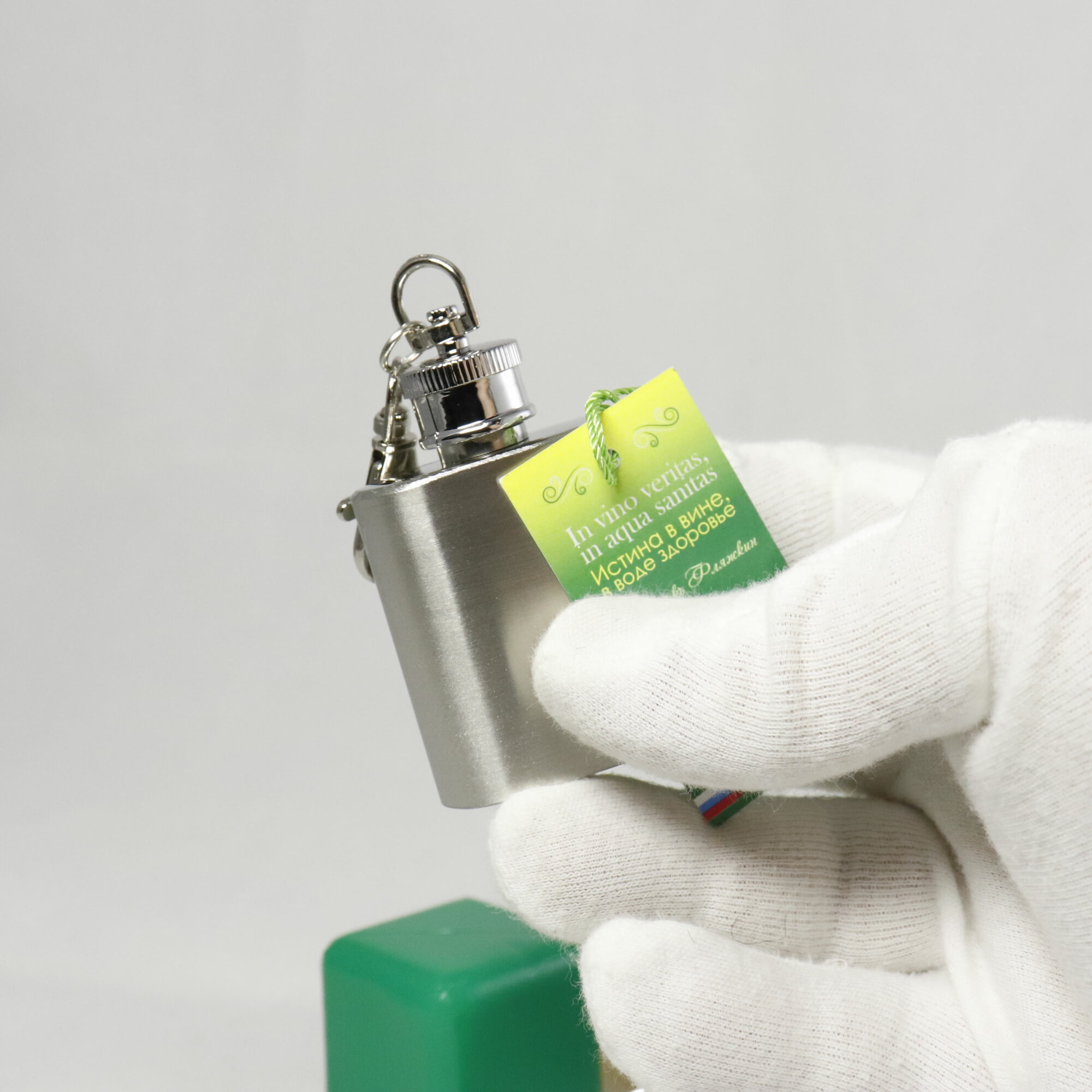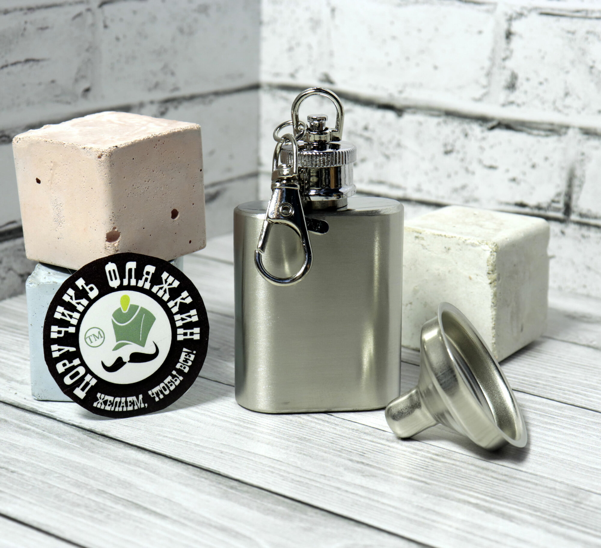 Металлическая фляжка на брелоке (60 мл), воронка. "Поручикъ Фляжкин"