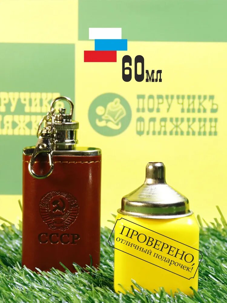 Фляжка брелок металлическая, 60мл и воронка. Поручикъ Фляжкин интересное: