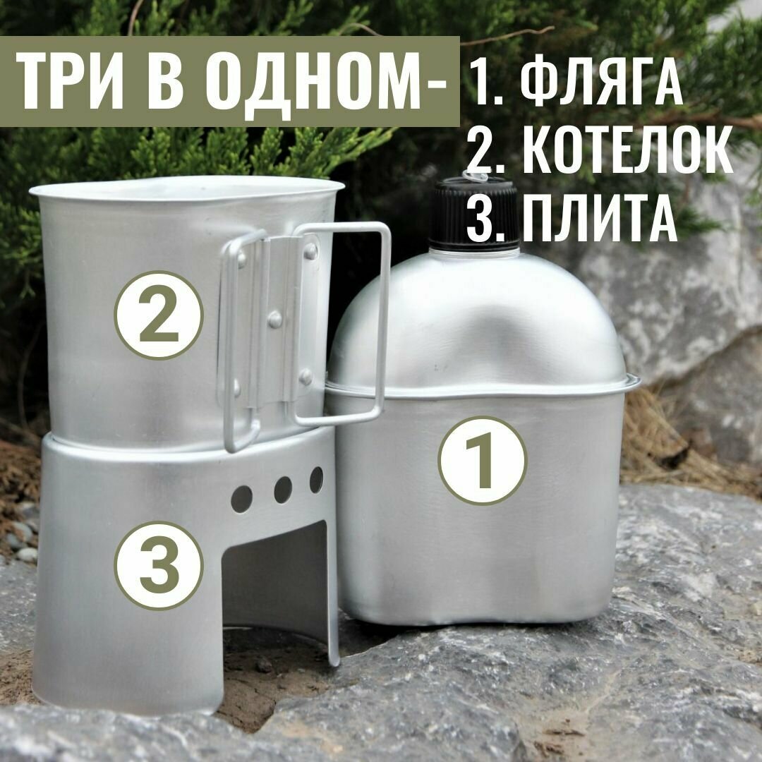 Купить Фляга армейская походная с котелком в чехле / туристическая для воды / походный набор