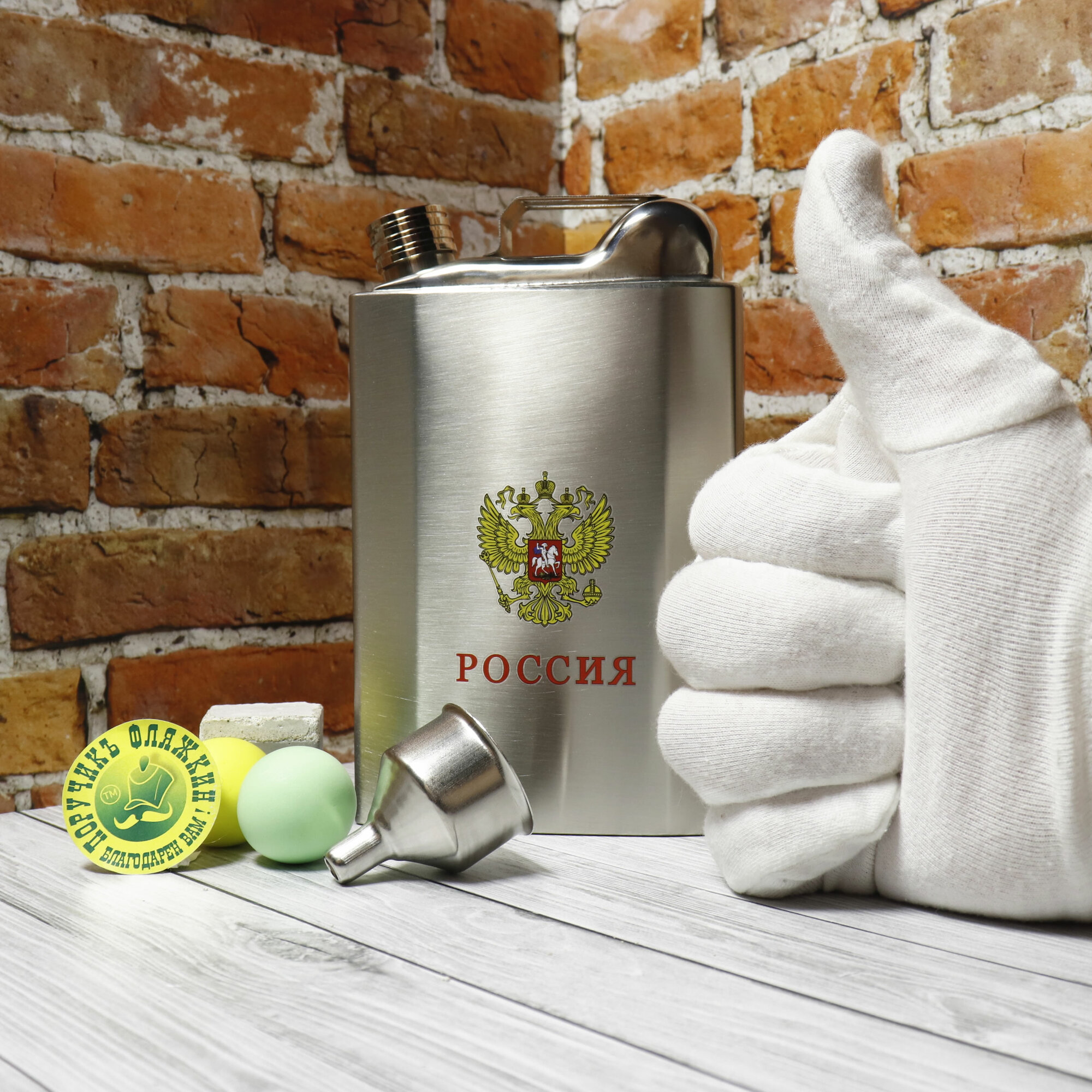 Фляжка "ШБ", 270 мл, серебристая, нержавеющая сталь, подарок мужчине,