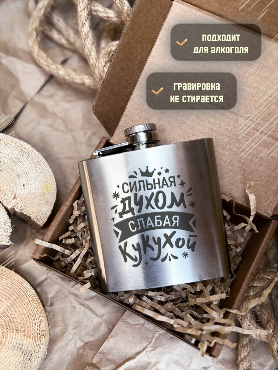 Купить Фляга для алкоголя "Сильная духом, слабая кукухой", фляжка подарочная из нержавеющей стали, 180 мл