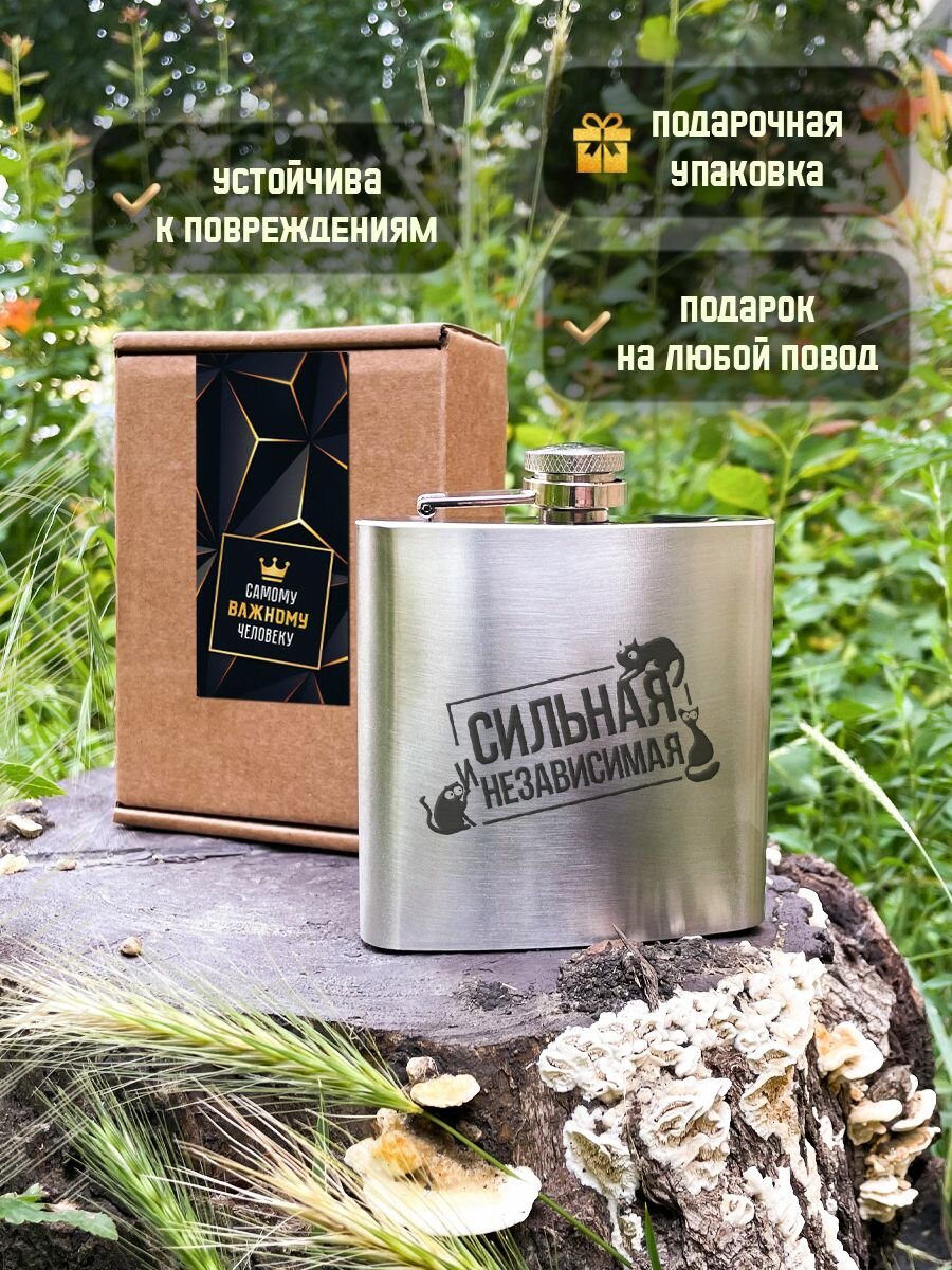 Купить Фляга для алкоголя "Сильная и независимая", фляжка подарочная из нержавеющей стали, 180 мл