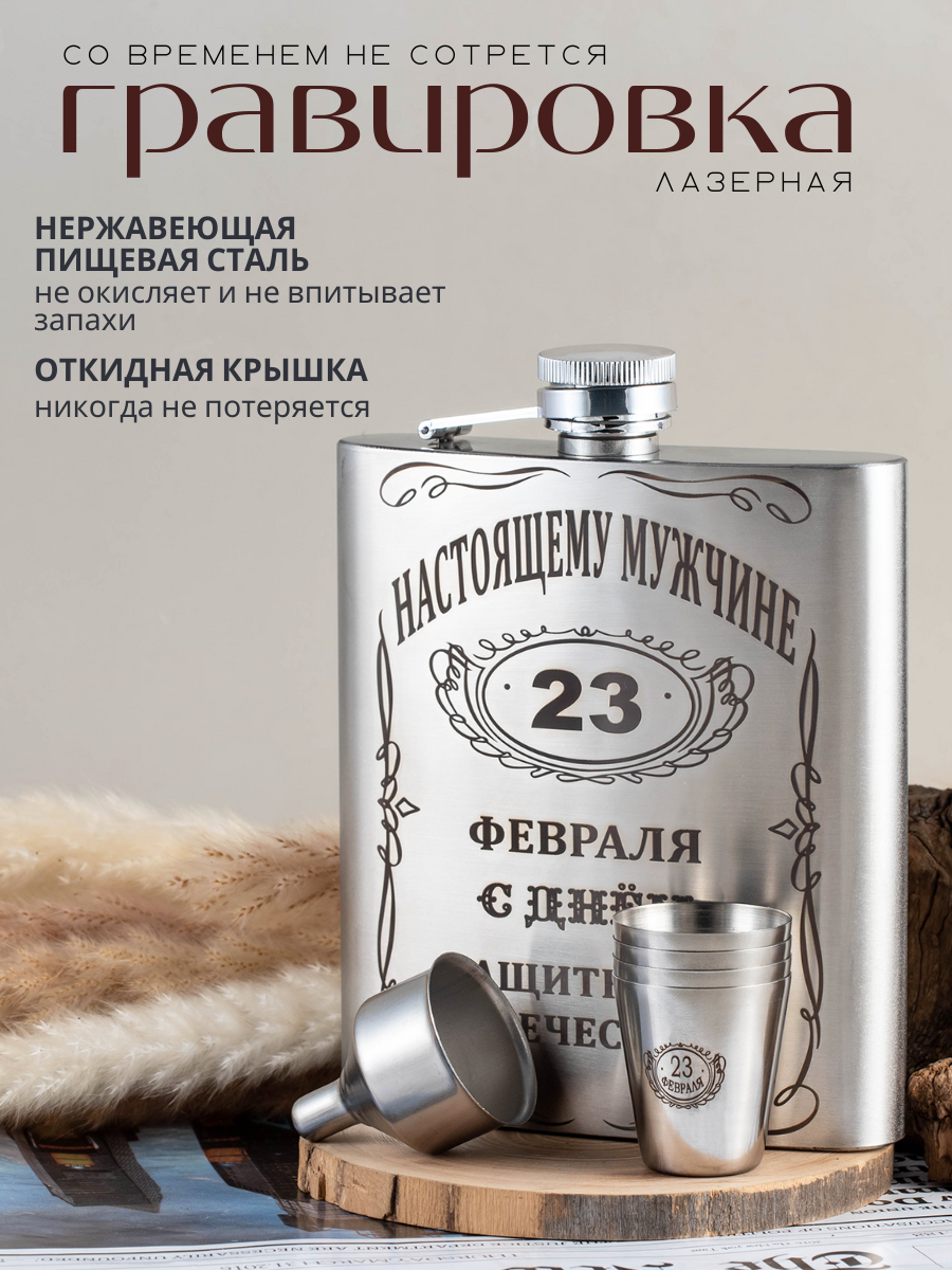 Купить Подарочный набор Magic Dreams с гравировкой 23 февраля, фляжка 450 мл , 4 стопки и воронка