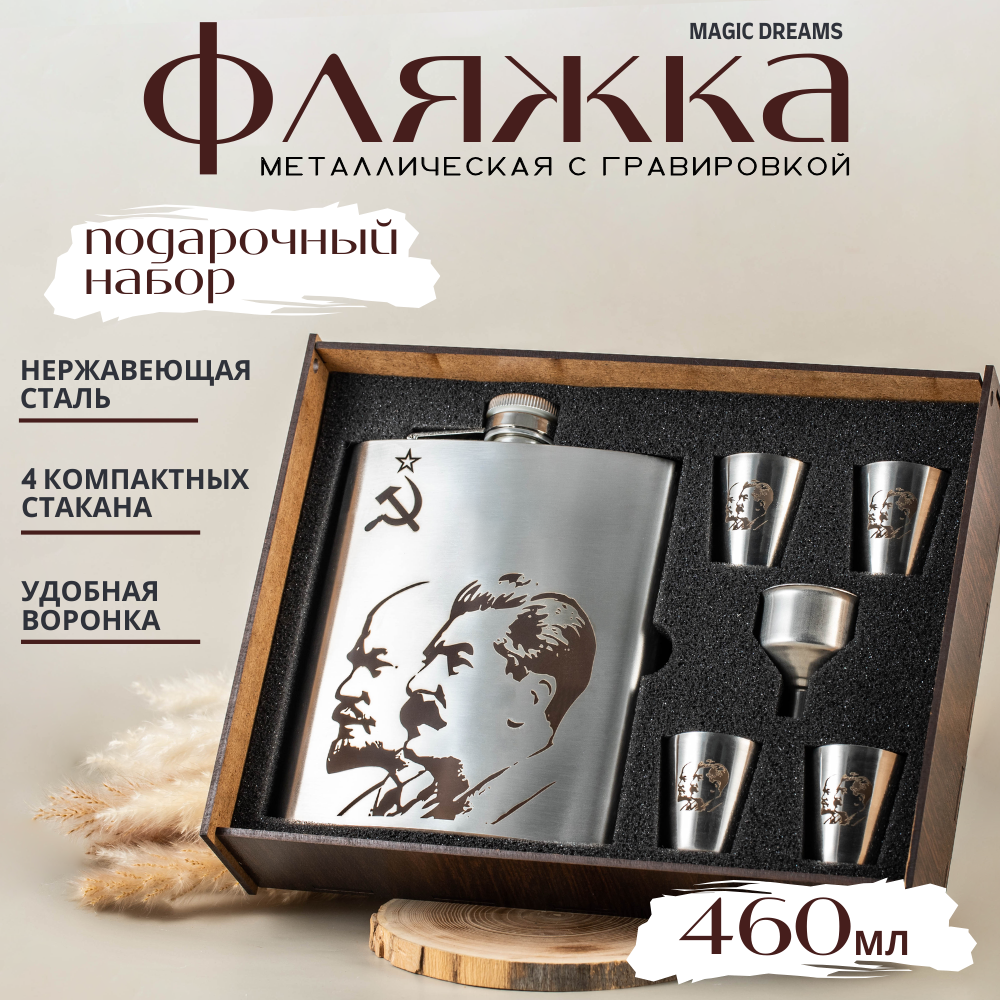 СохранитьПодарочный набор Magic Dreams с гравировкой Ленин-Сталин, фляжка 460 мл и 4 стаканчика интересное: