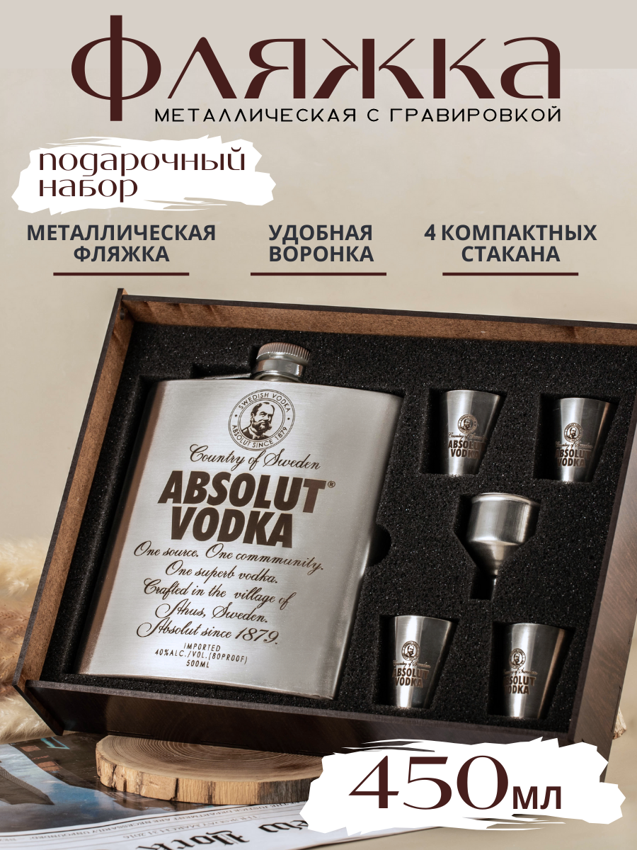 СохранитьПодарочный набор Magic Dreams с гравировкой "Абсолют", фляжка 460 мл и 4 стаканчика интересное: