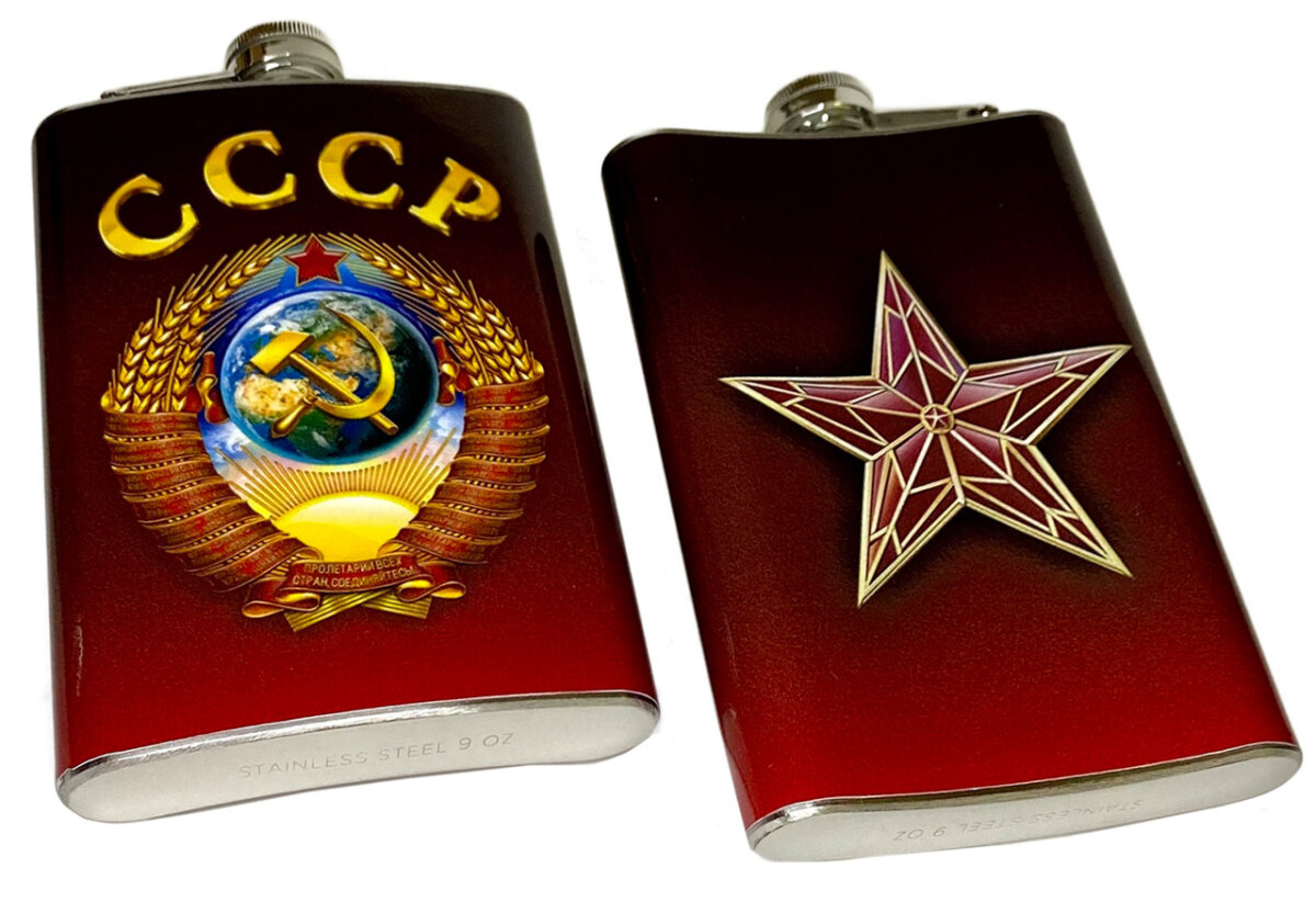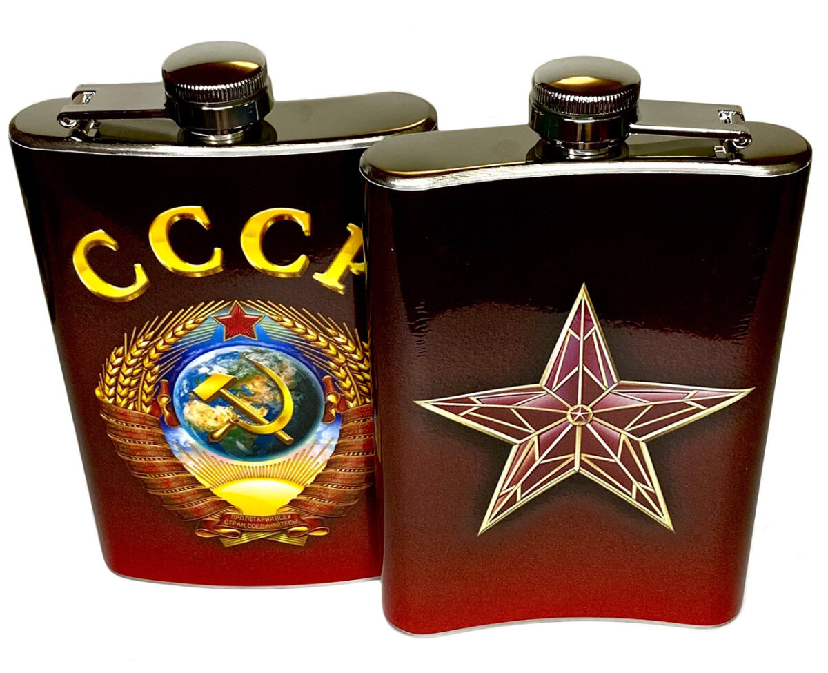 Стальная фляжка с гербом СССР, пищевая сталь, объем 9 Oz = 255мл интересное: