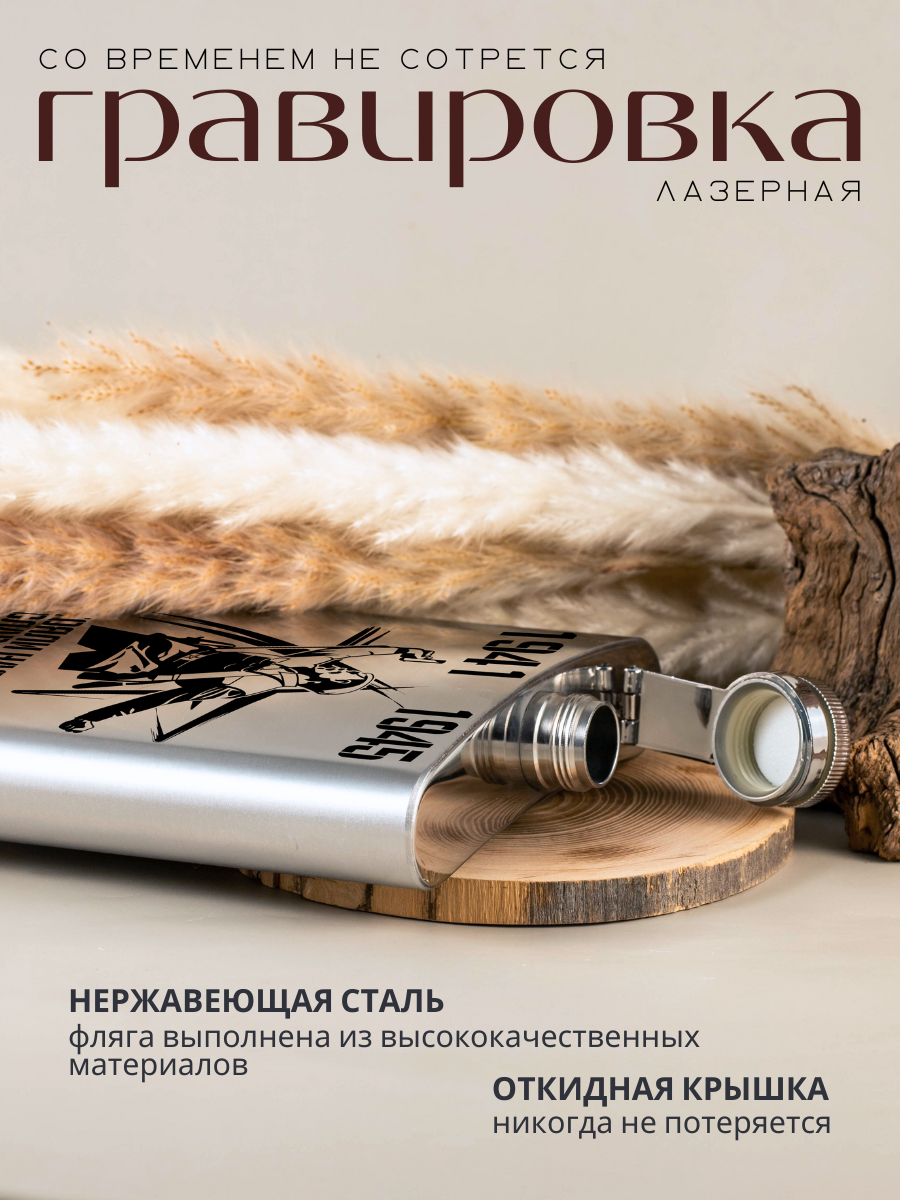 Фляжка металлическая с гравировкой "День Победы" 450 мл, туристическая, армейская, подарочная