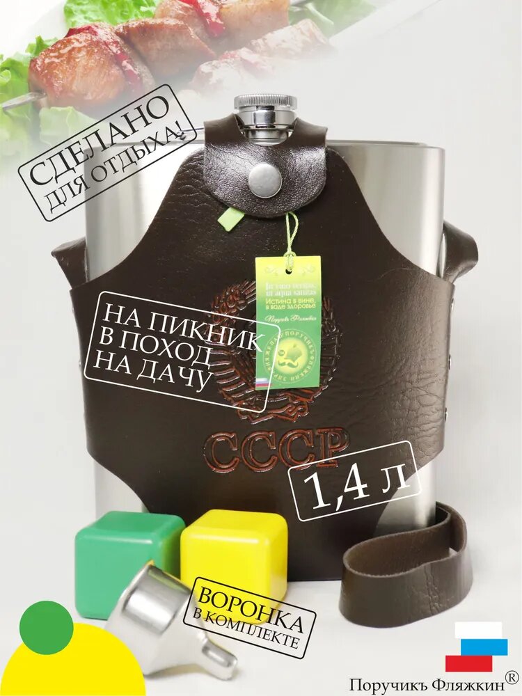 Ниже Вы можете прочитать отзывы на Фляжка металлическая (1.4 л) в чехле, воронка. "Поручикъ Фляжкин", ознакомится с подробными характеристиками, посмотреть интересные обзоры и фотографии на Фляжка металлическая (1.4 л) в чехле, воронка. "Поручикъ Фляжкин".