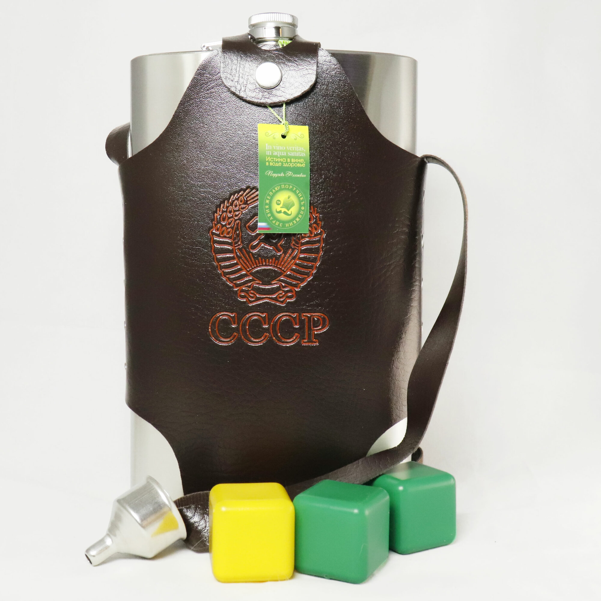 СохранитьФляжка металлическая (1.86 л) в чехле, воронка. "Поручикъ Фляжкин" интересное:
