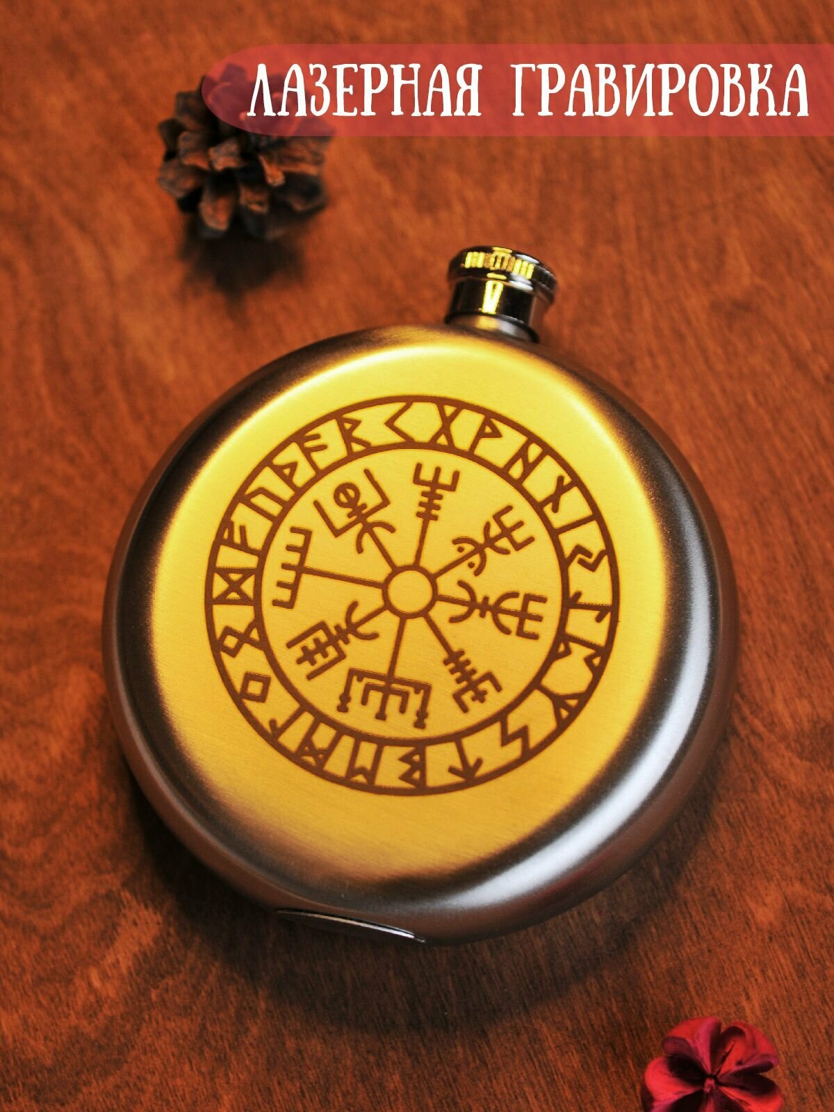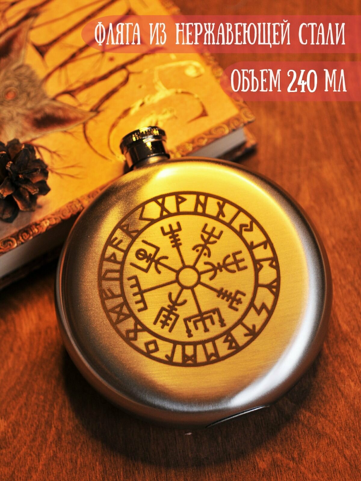 Фляга круглая металлическая RiForm с гравировкой "Вегвизир руны Компас", 240мл интересное: