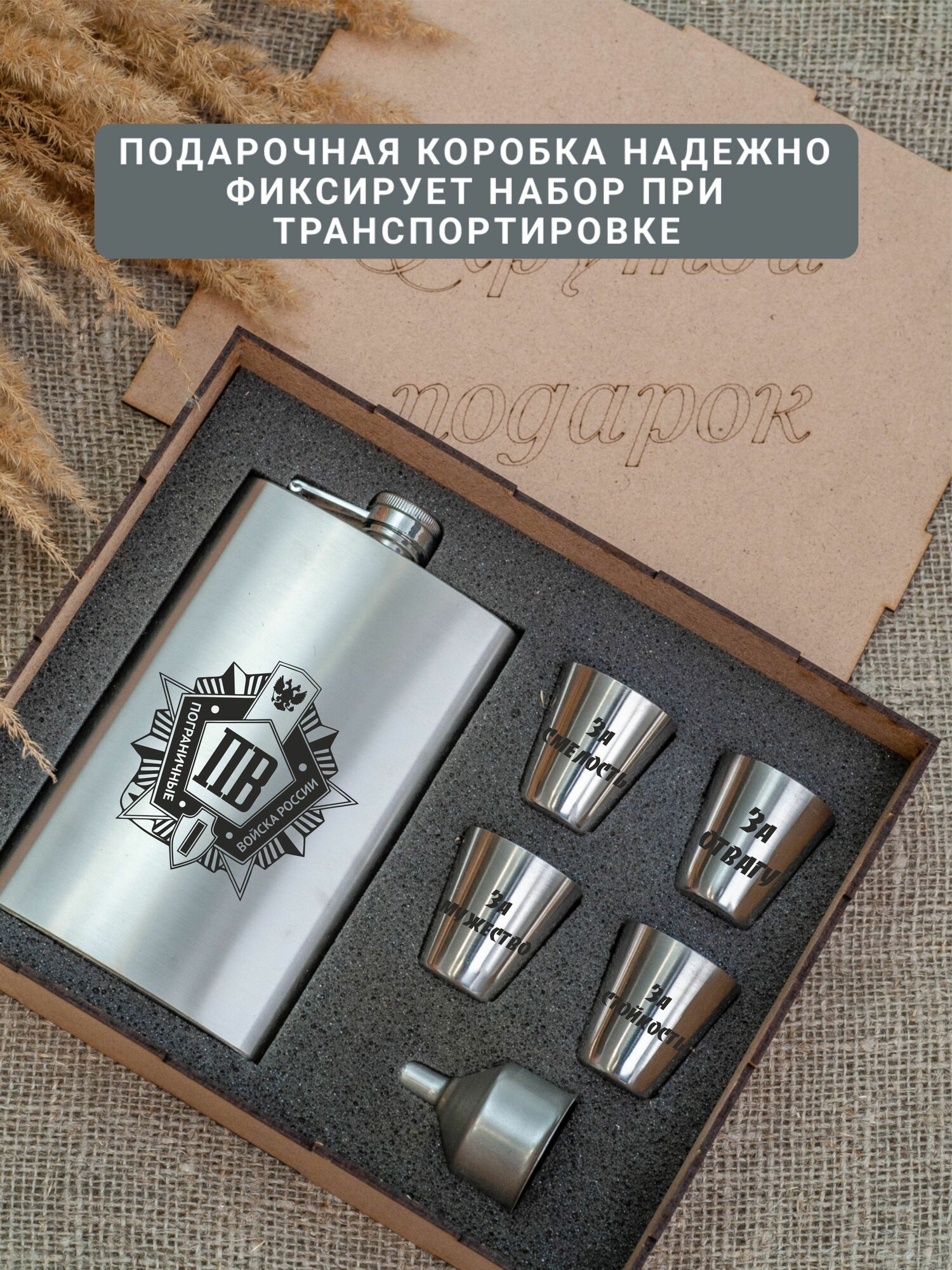 Купить Подарочный набор фляга со стопками с гравировкой Пограничные войска России