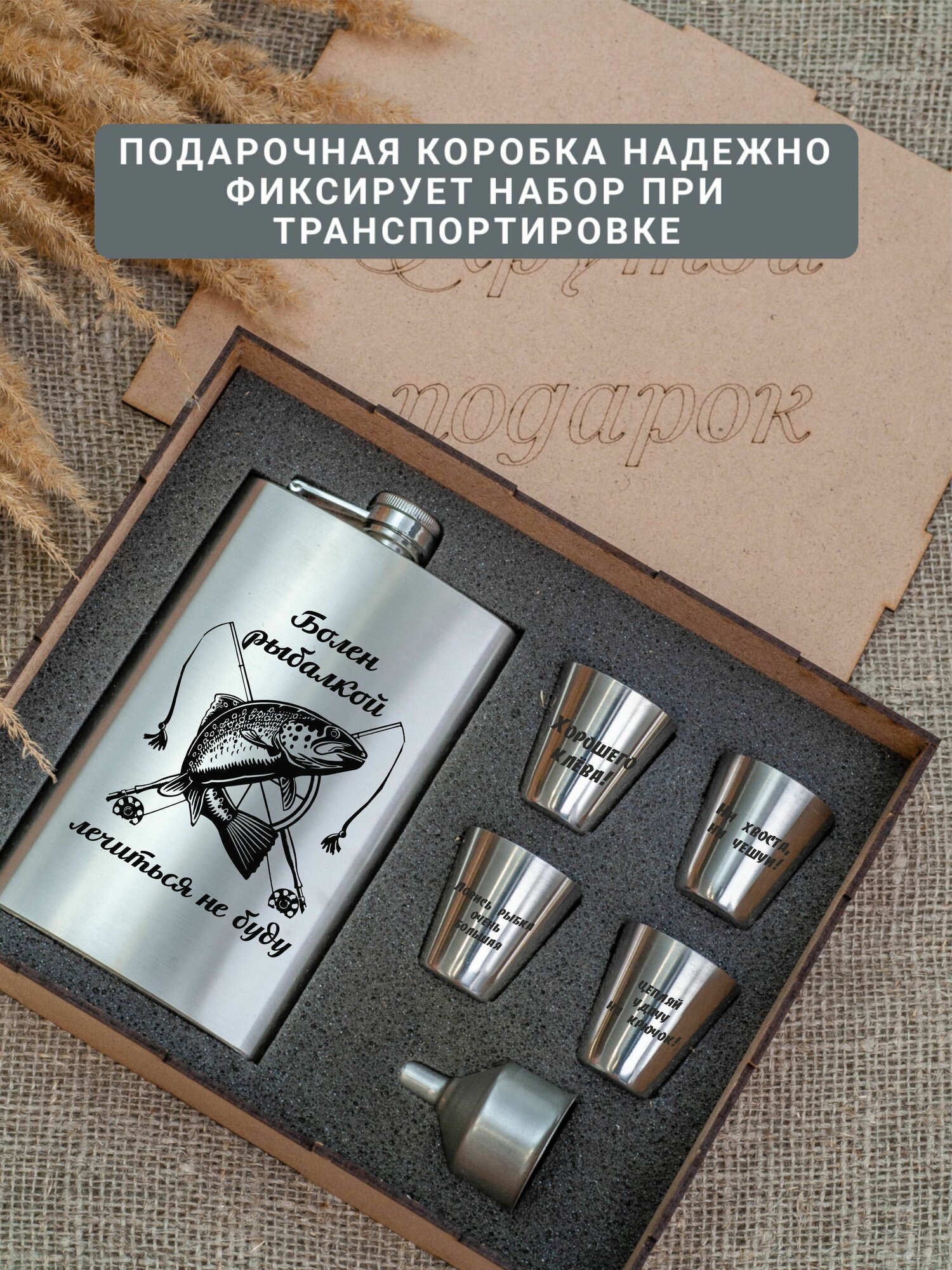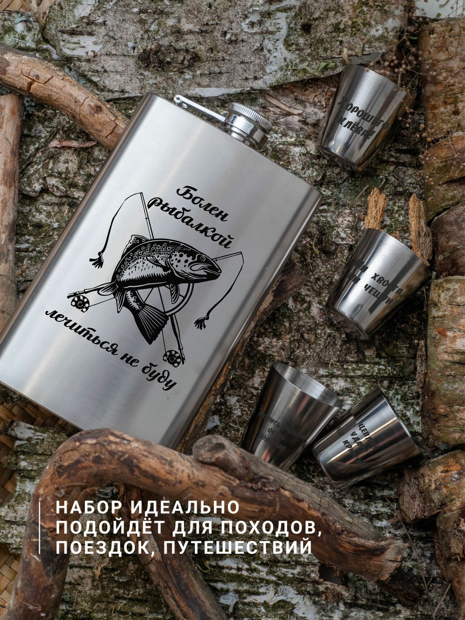 Купить Подарочный набор фляга со стопками с гравировкой Болен рыбалкой лечиться не буду
