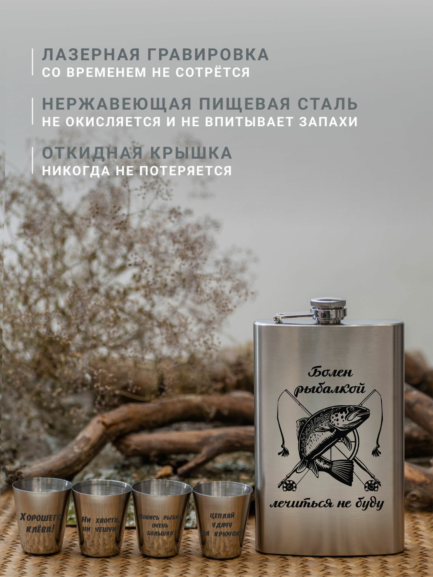 Ниже Вы можете прочитать отзывы на Подарочный набор фляга со стопками с гравировкой Болен рыбалкой лечиться не буду, ознакомится с подробными характеристиками, посмотреть интересные обзоры и фотографии на Подарочный набор фляга со стопками с гравировкой Болен рыбалкой лечиться не буду.