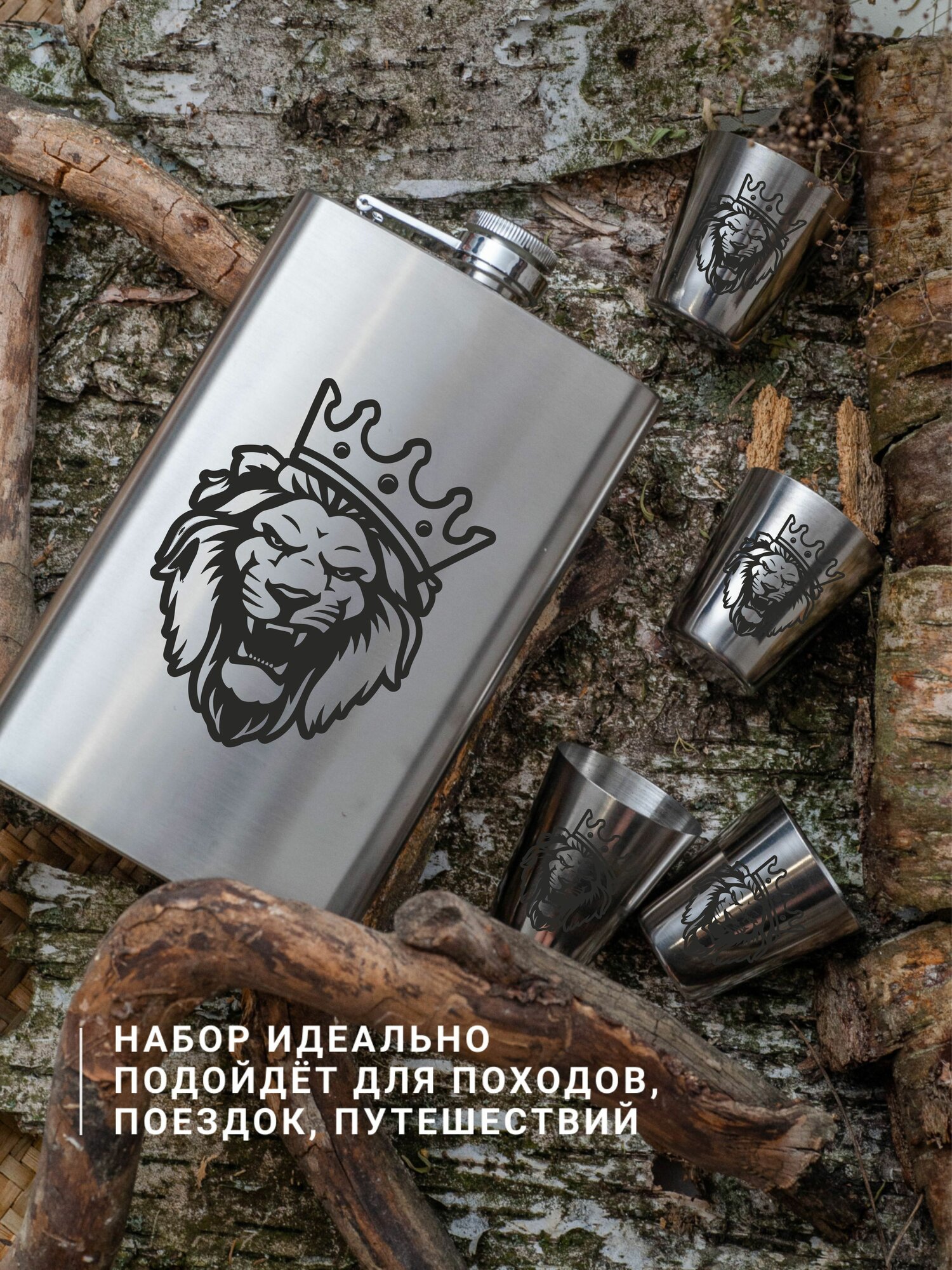 Купить Подарочный набор фляга со стопками с гравировкой Лев