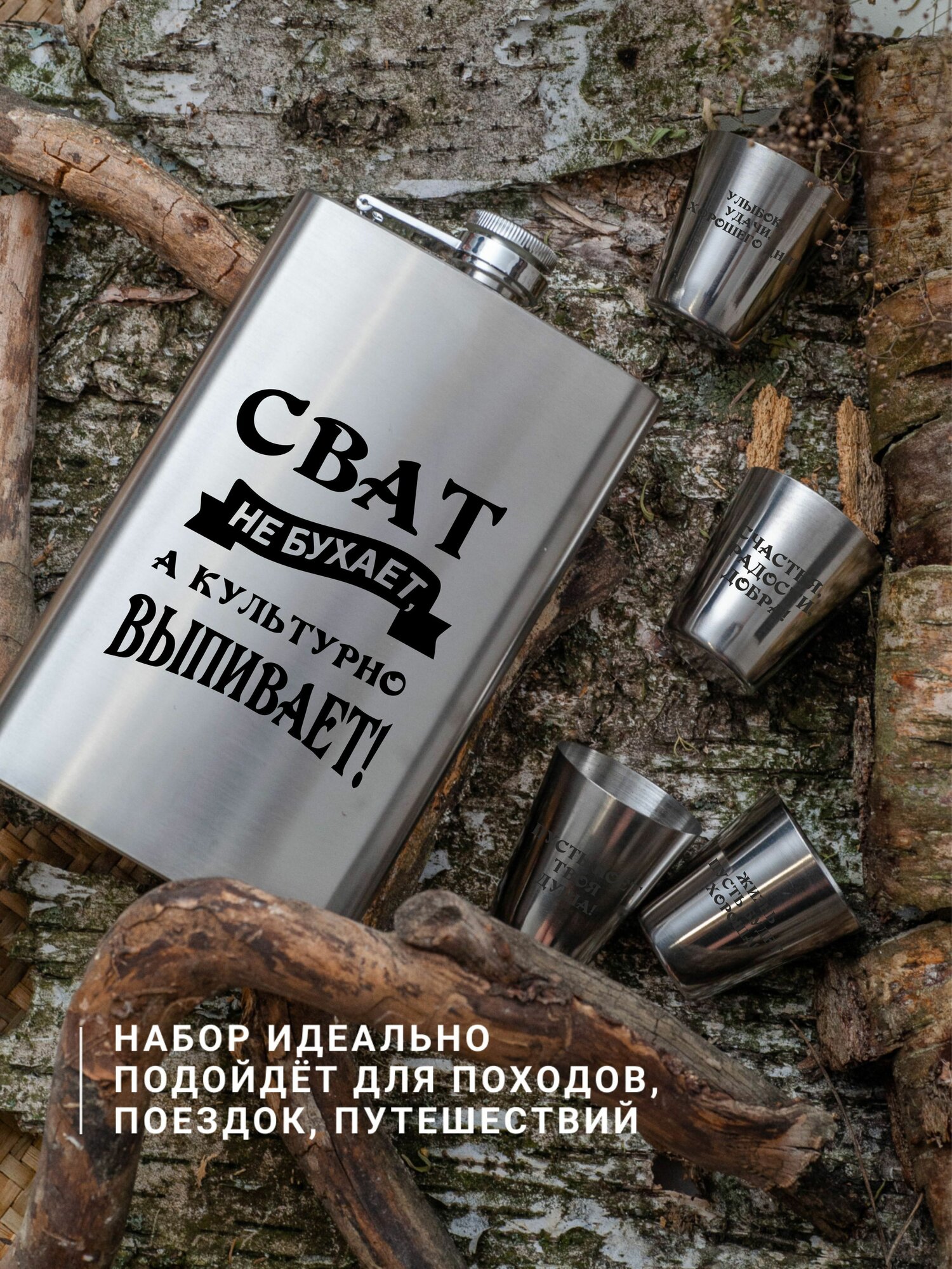 Купить Подарочный набор фляга со стопками с гравировкой Сват не бухает, а культурно выпивает