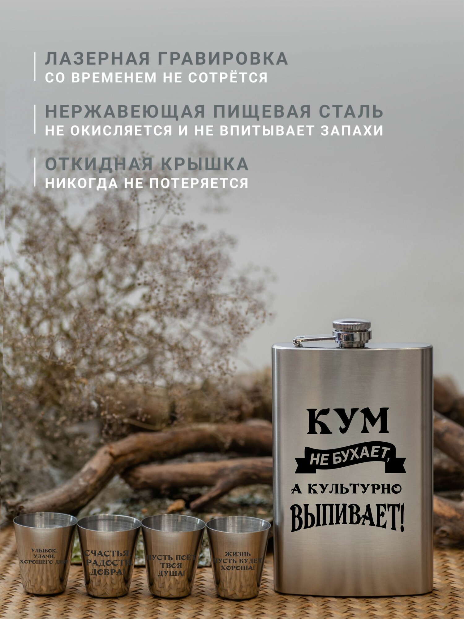 Купить Подарочный набор фляга со стопками с гравировкой Кум не бухает, а культурно выпивает