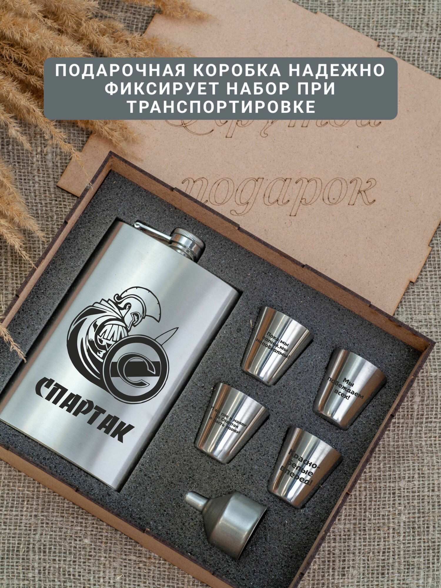 СохранитьПодарочный набор фляга со стопками с гравировкой Спартак интересное: