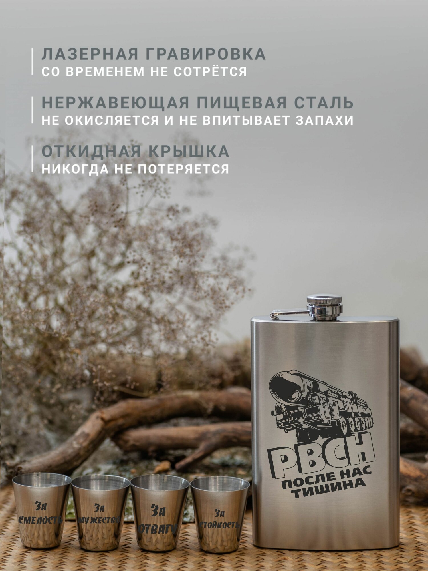 СохранитьПодарочный набор фляга со стопками с гравировкой РВСН после нас тишина интересное: