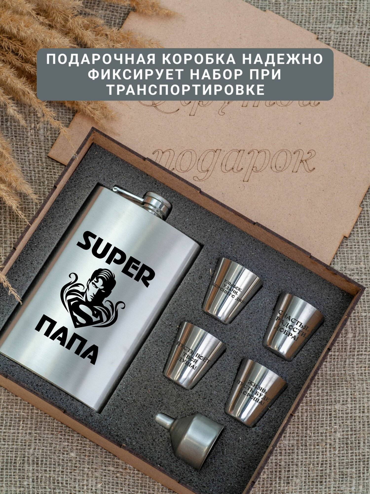 Купить Подарочный набор фляга со стопками с гравировкой SUPER папа