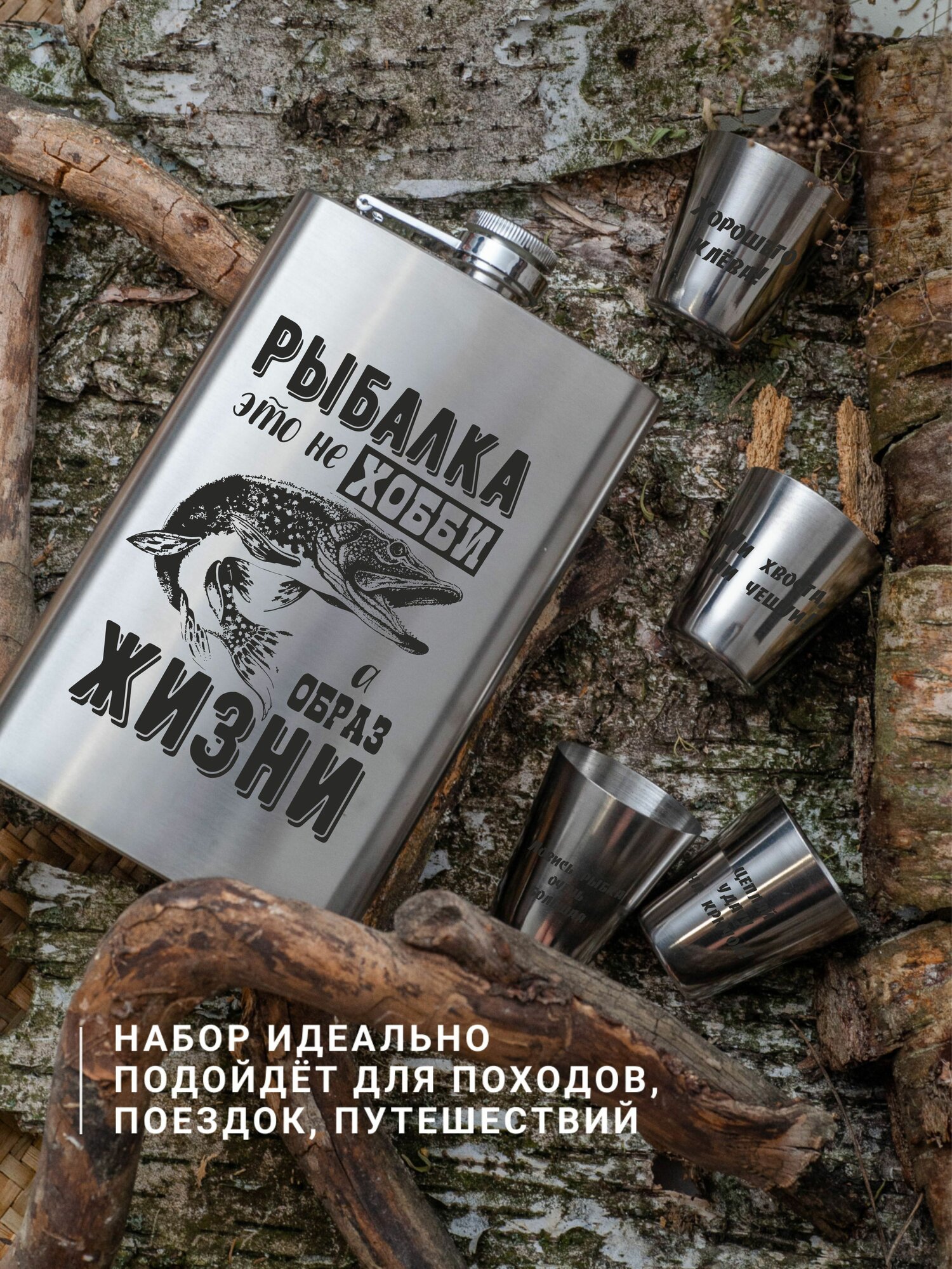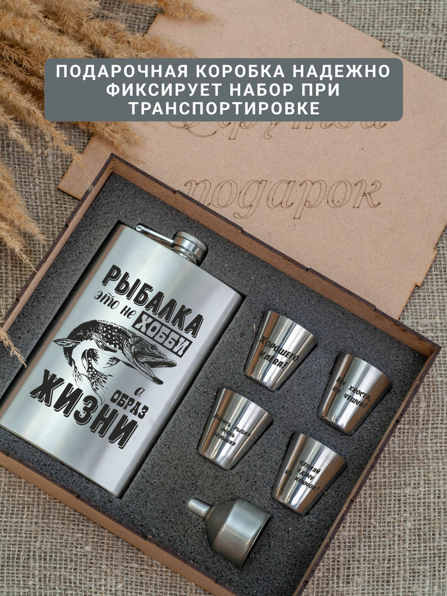 Купить Подарочный набор фляга со стопками с гравировкой Рыбалка это не хобби, а образ жизни