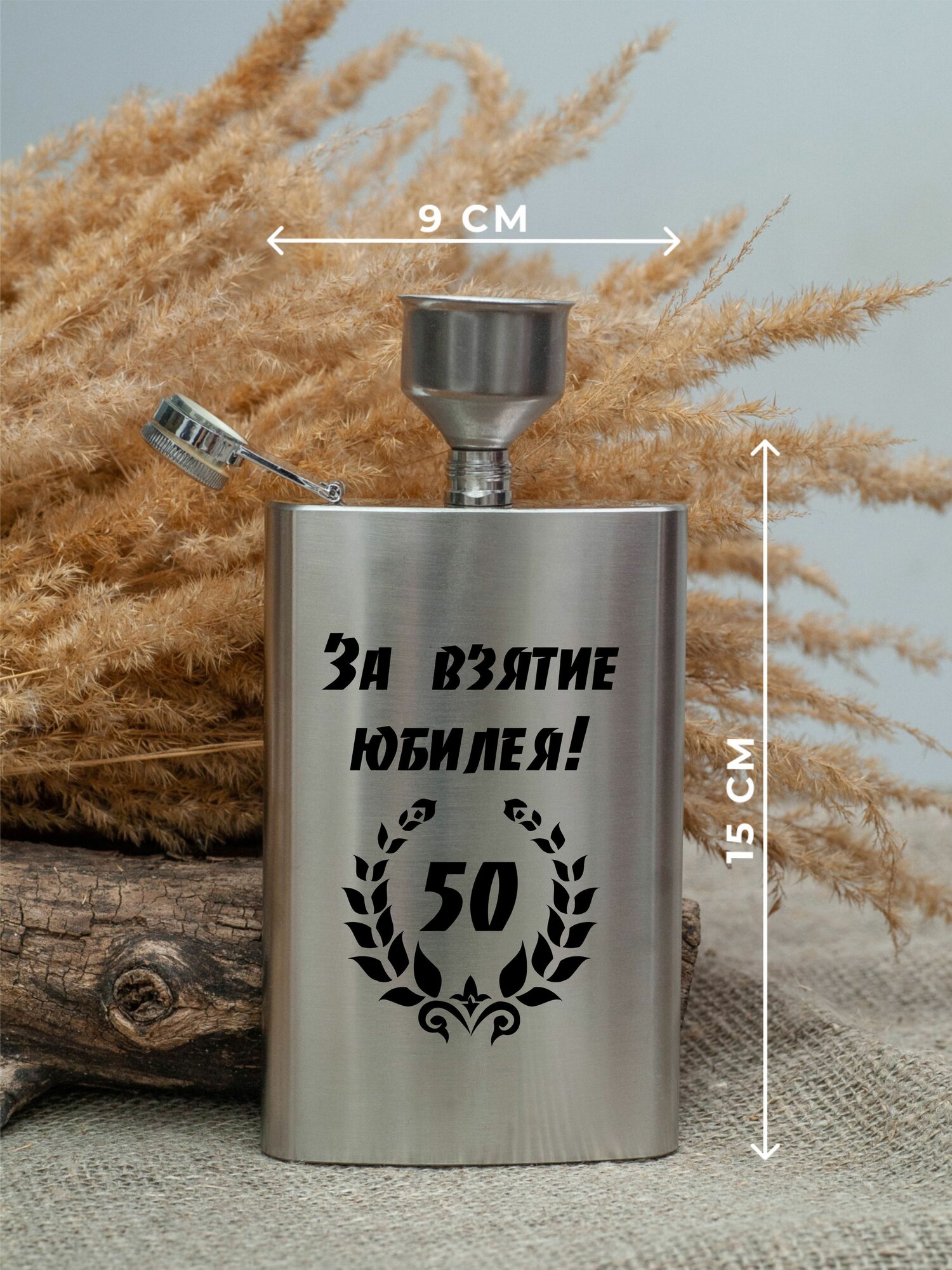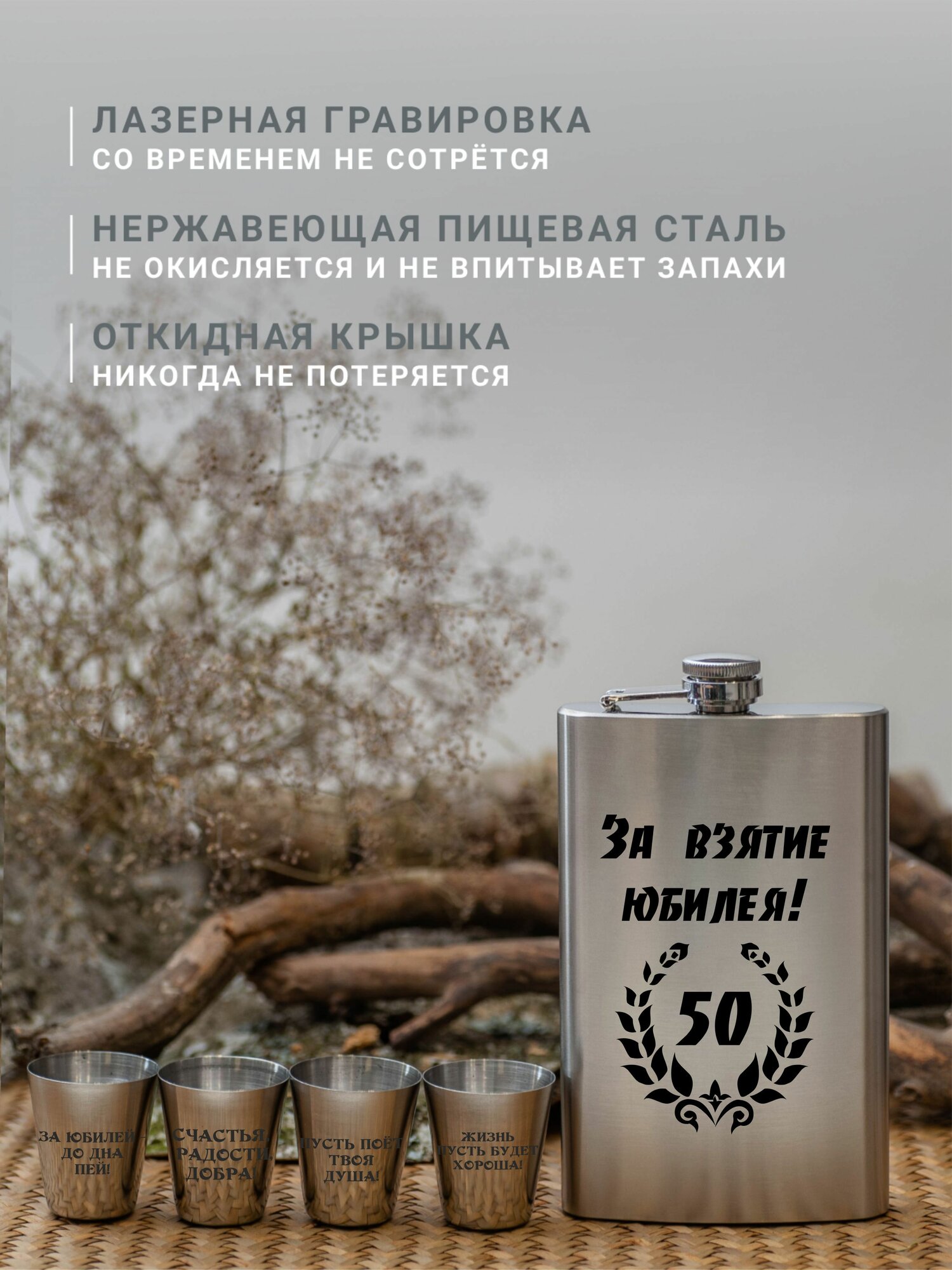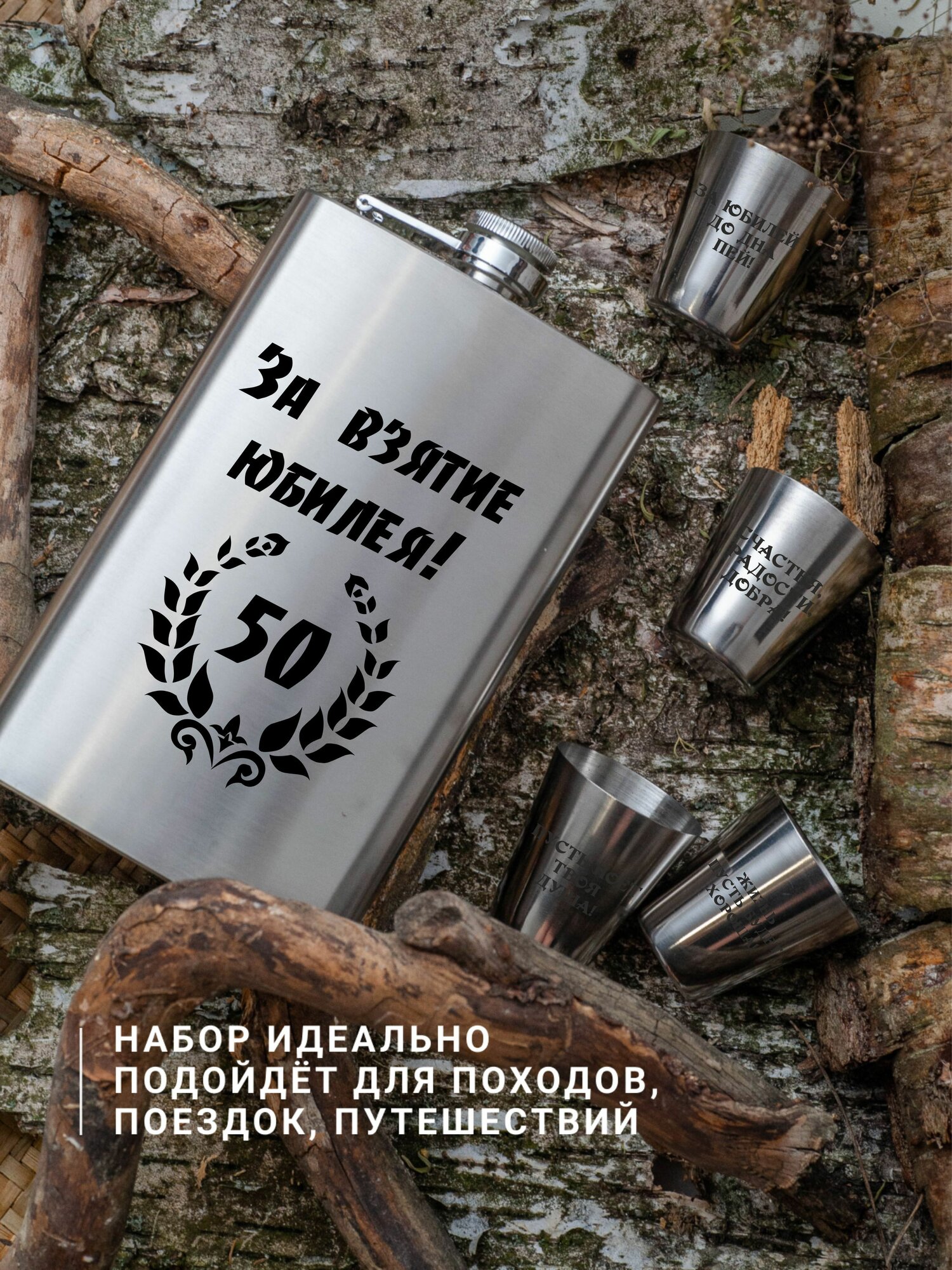 Купить Подарочный набор фляга со стопками с гравировкой За взятие юбилея 50