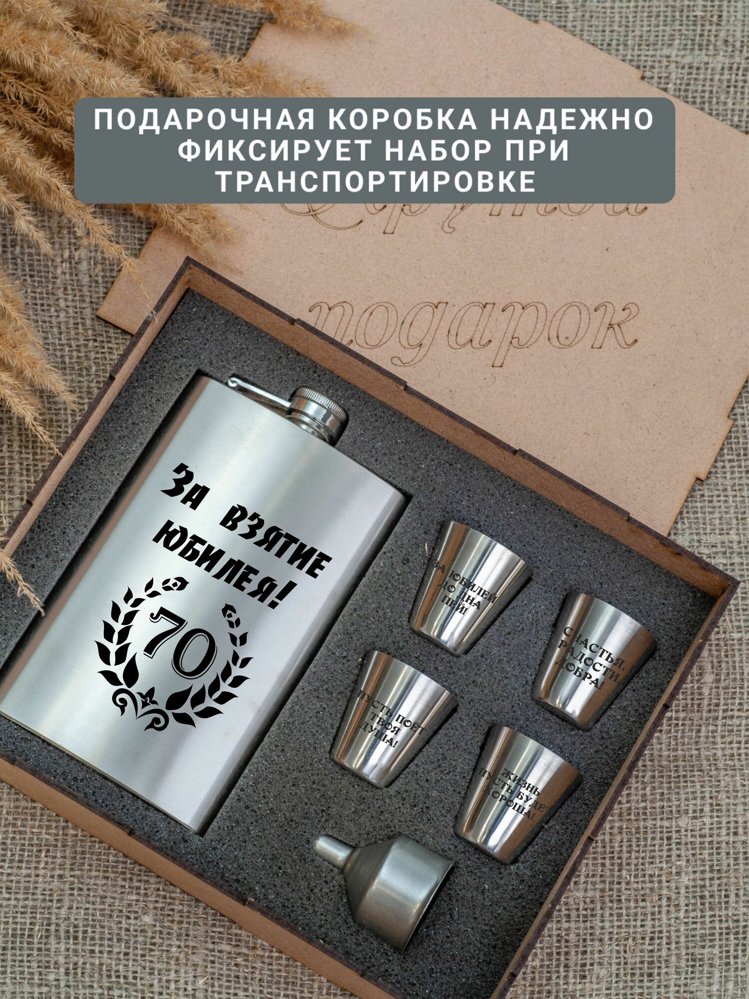 Купить Подарочный набор фляга со стопками с гравировкой За взятие юбилея 70