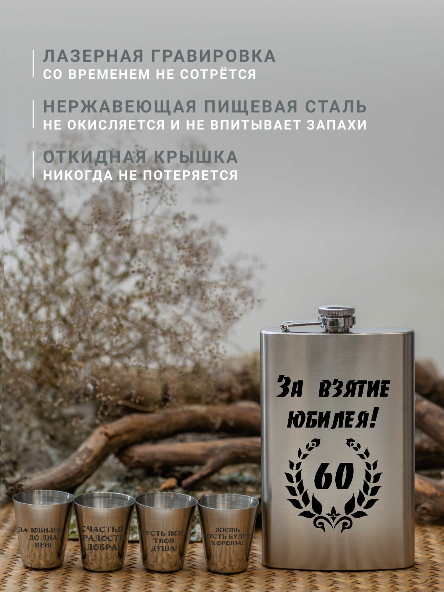 СохранитьПодарочный набор фляга со стопками с гравировкой За взятие юбилея 60 интересное: