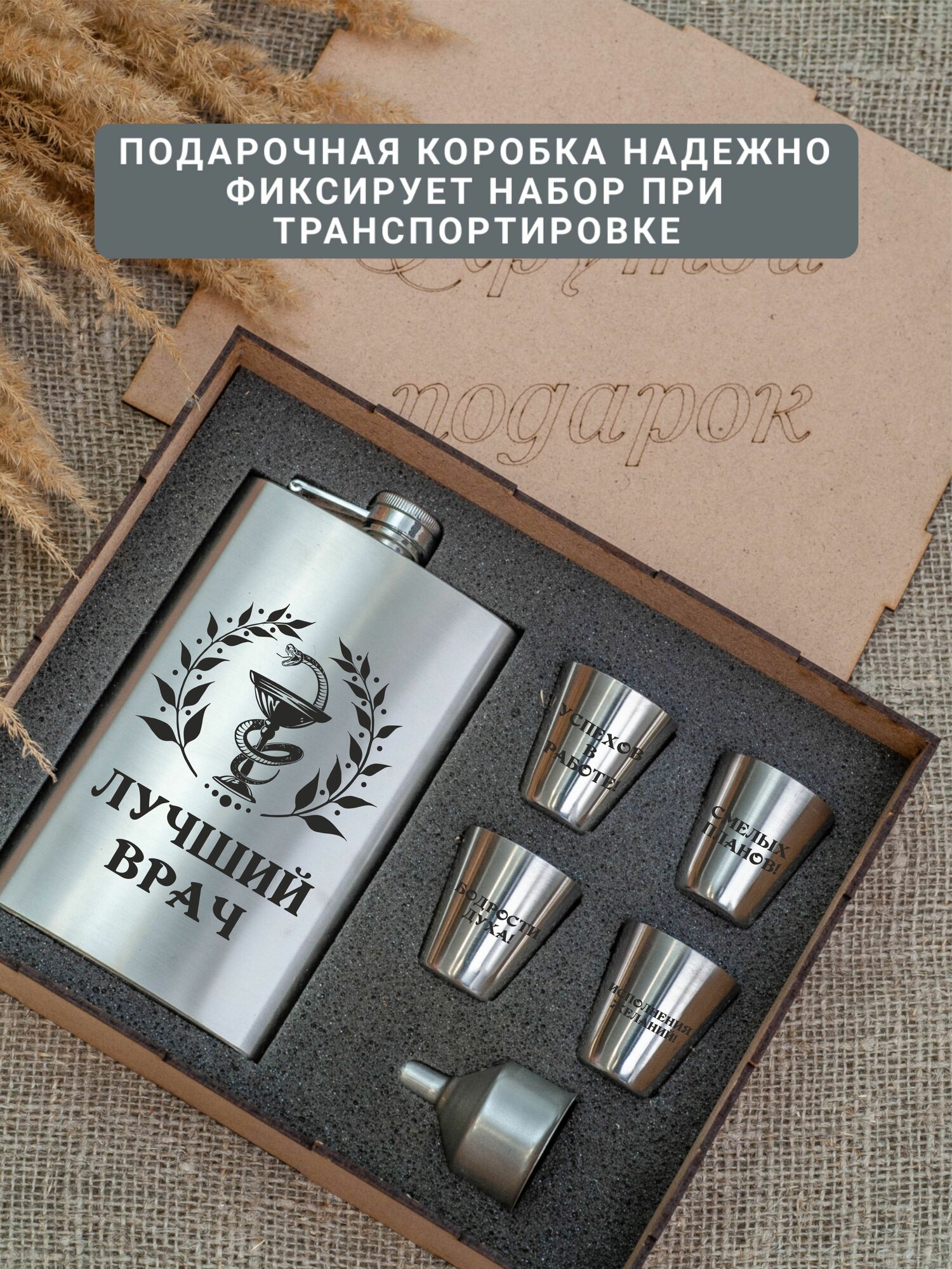 СохранитьПодарочный набор фляга со стопками с гравировкой Лучший врач интересное: