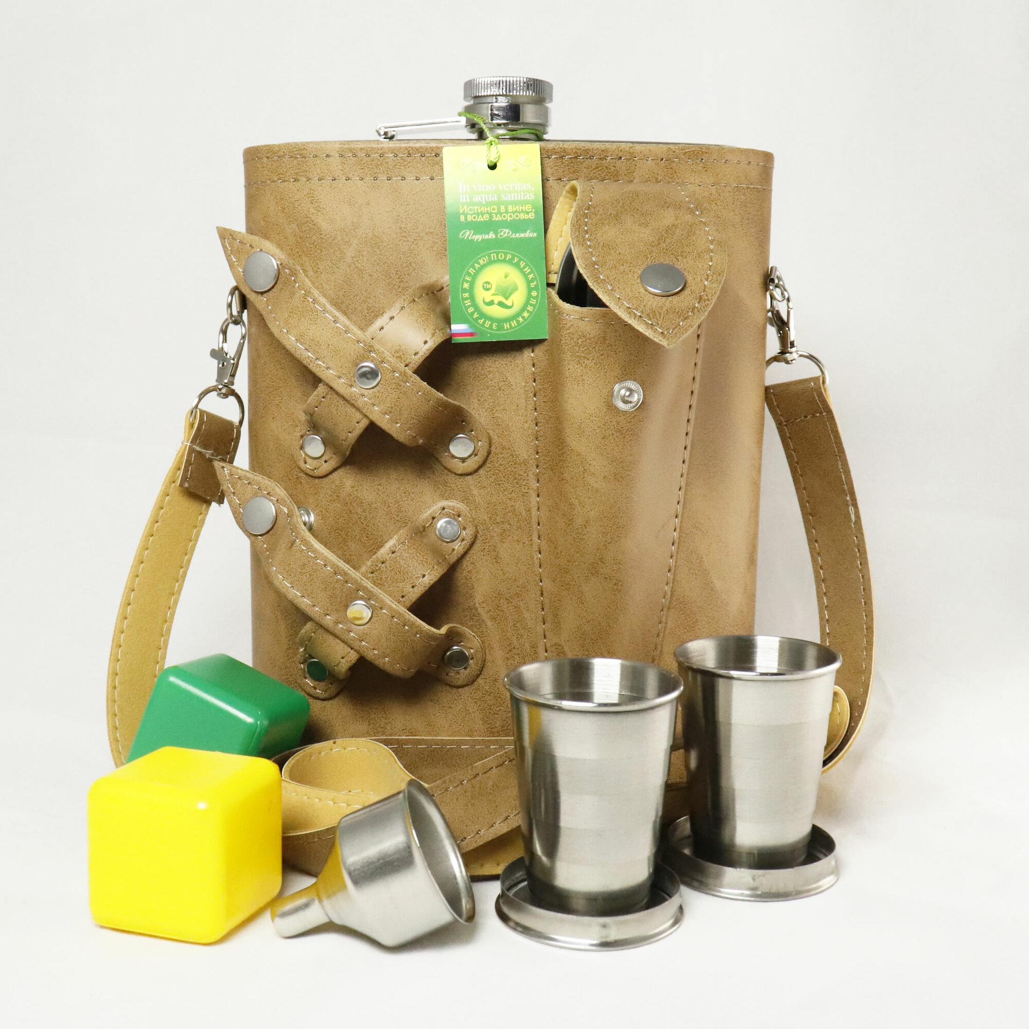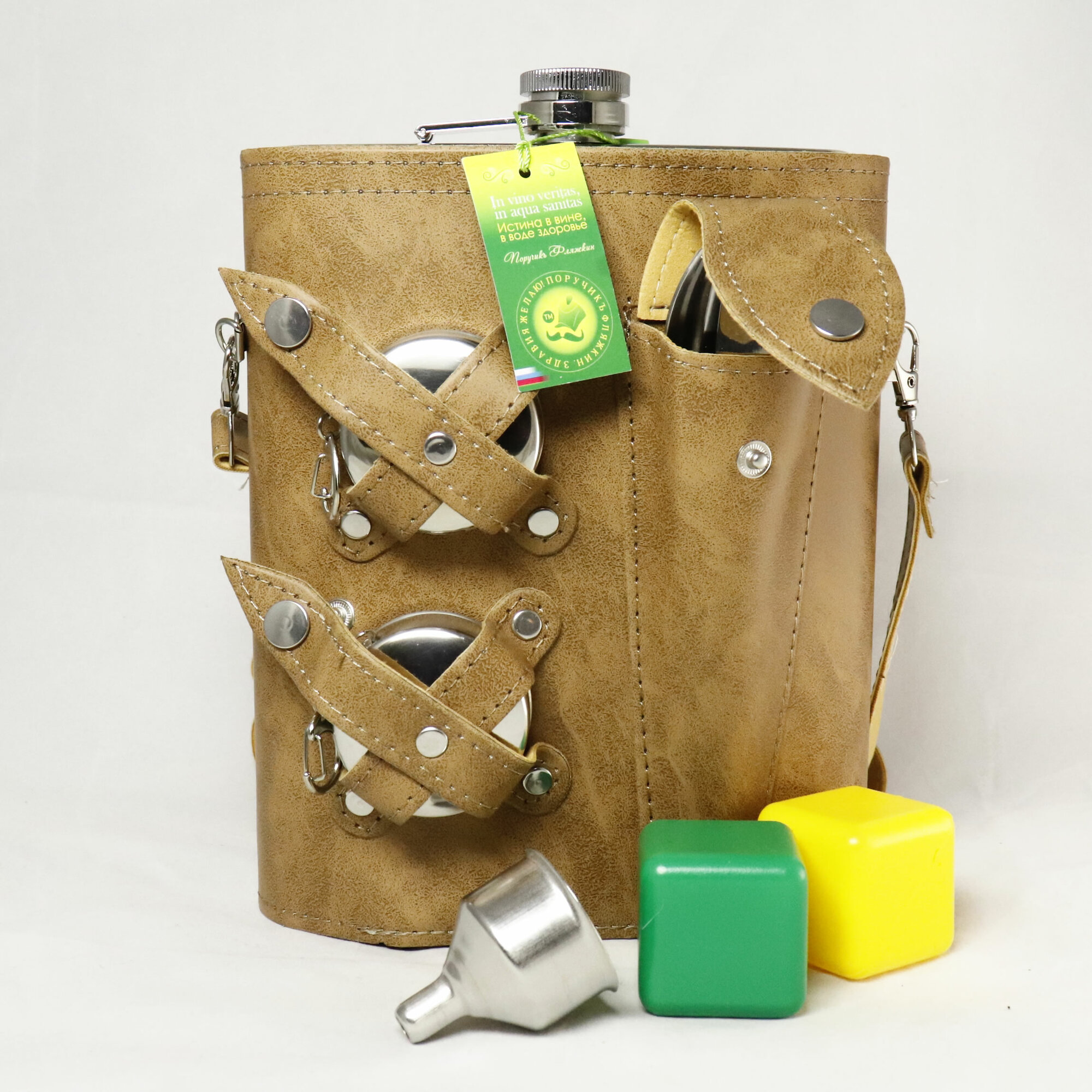 Фляжка (1,22л) в чехле, три стопки, мульти-набор, фонарик с указкой, воронка. Поручикъ Фляжкин