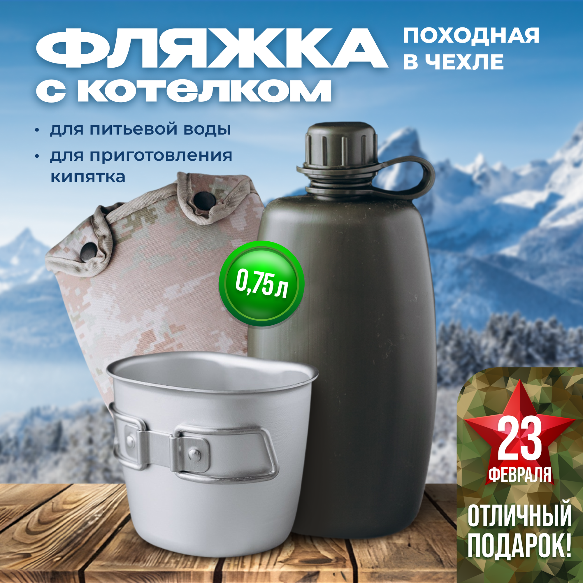 Походная фляжка MGProf с котелком 750 мл полипропиленовая интересное: