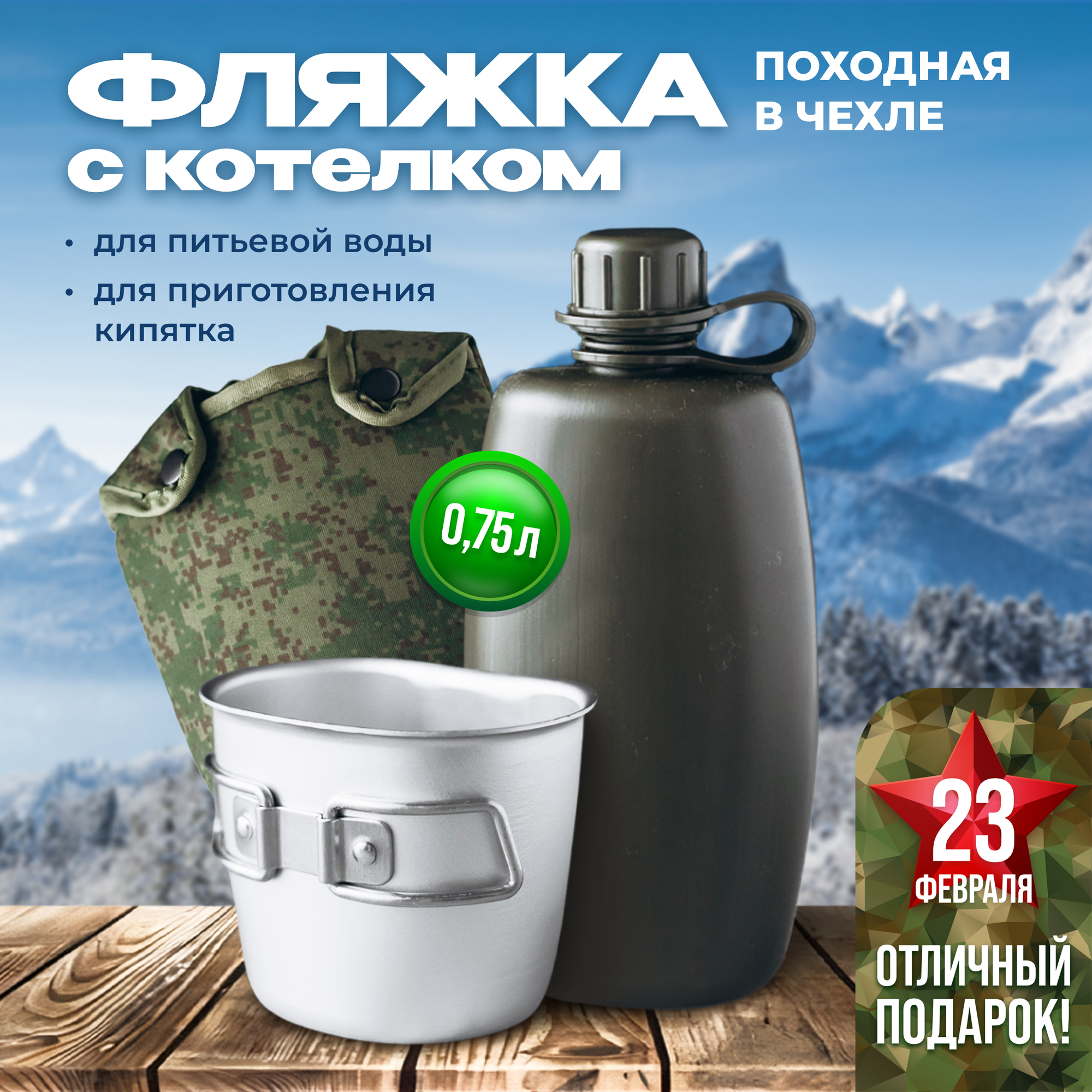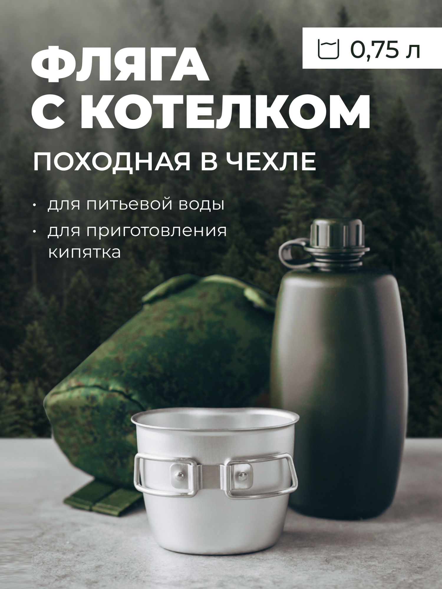 Фляжка походная с котелком 750 мл MGProf полипропиленовая в чехле интересное: