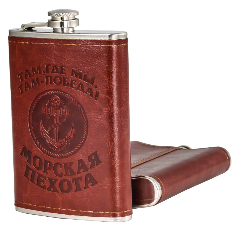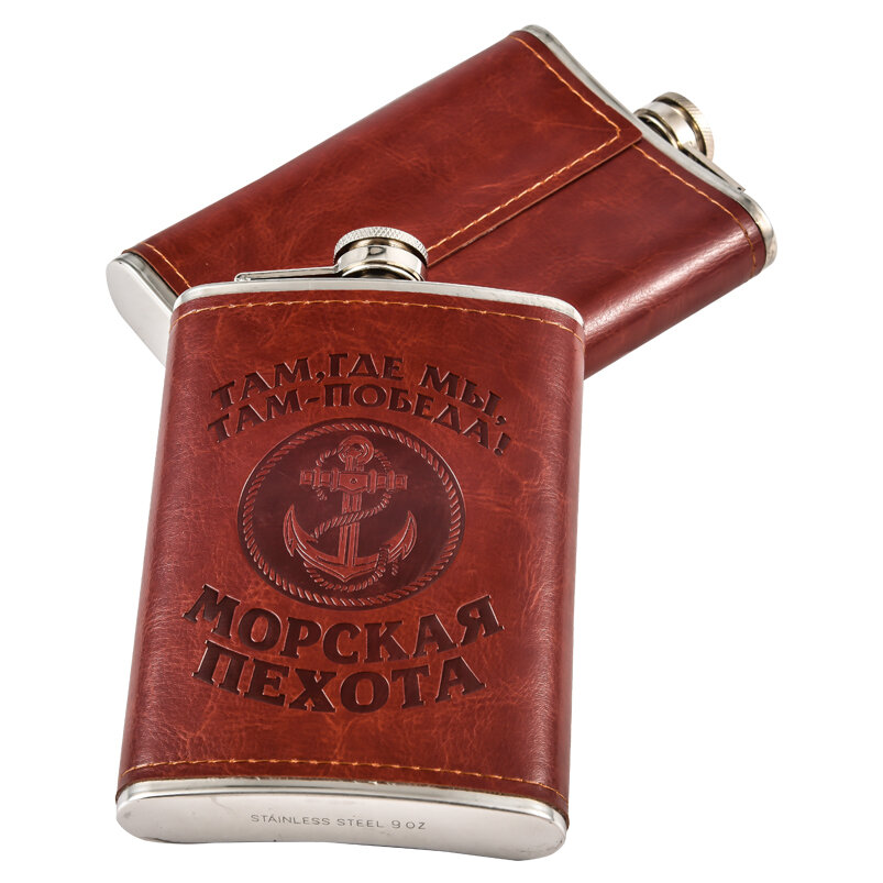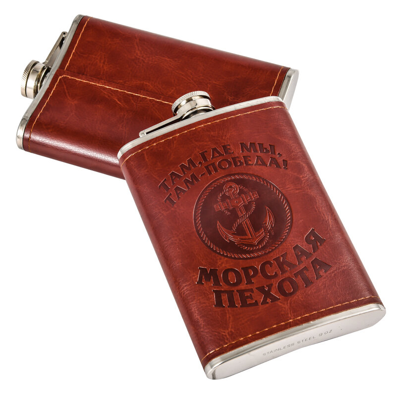 Объем 9 Oz = 255мл, пищевая стальПлоская нержавеющая фляжка в чехле "Морская пехота" интересное:
