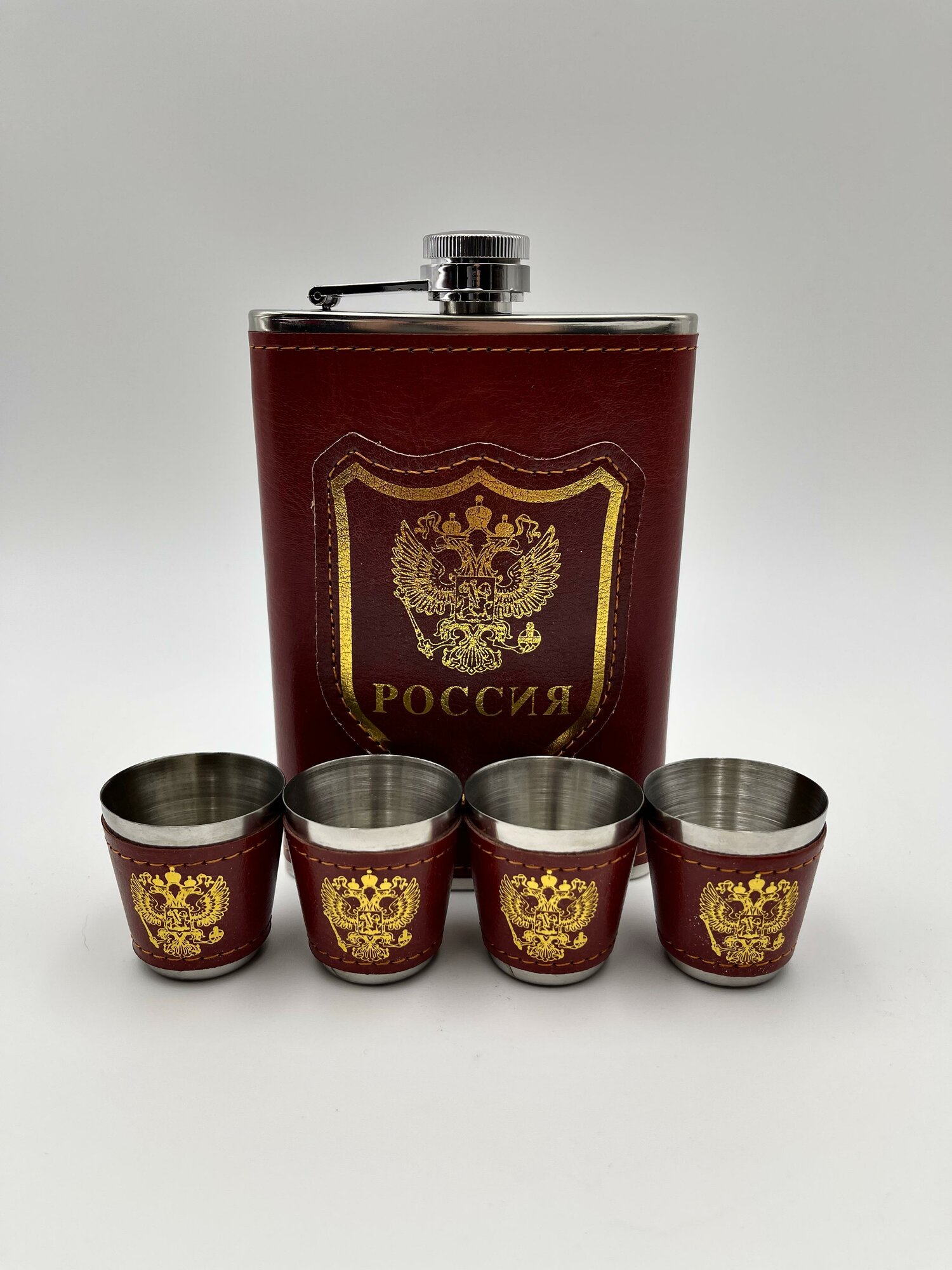 Подарочный набор 5 в 1: фляжка, 4 рюмки, воронка, -22х18 см.